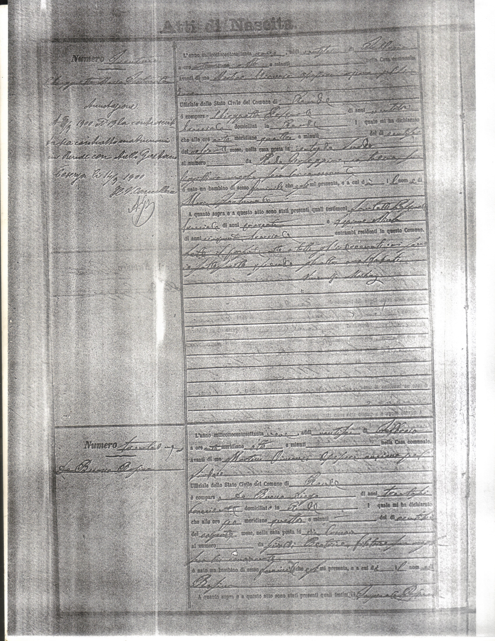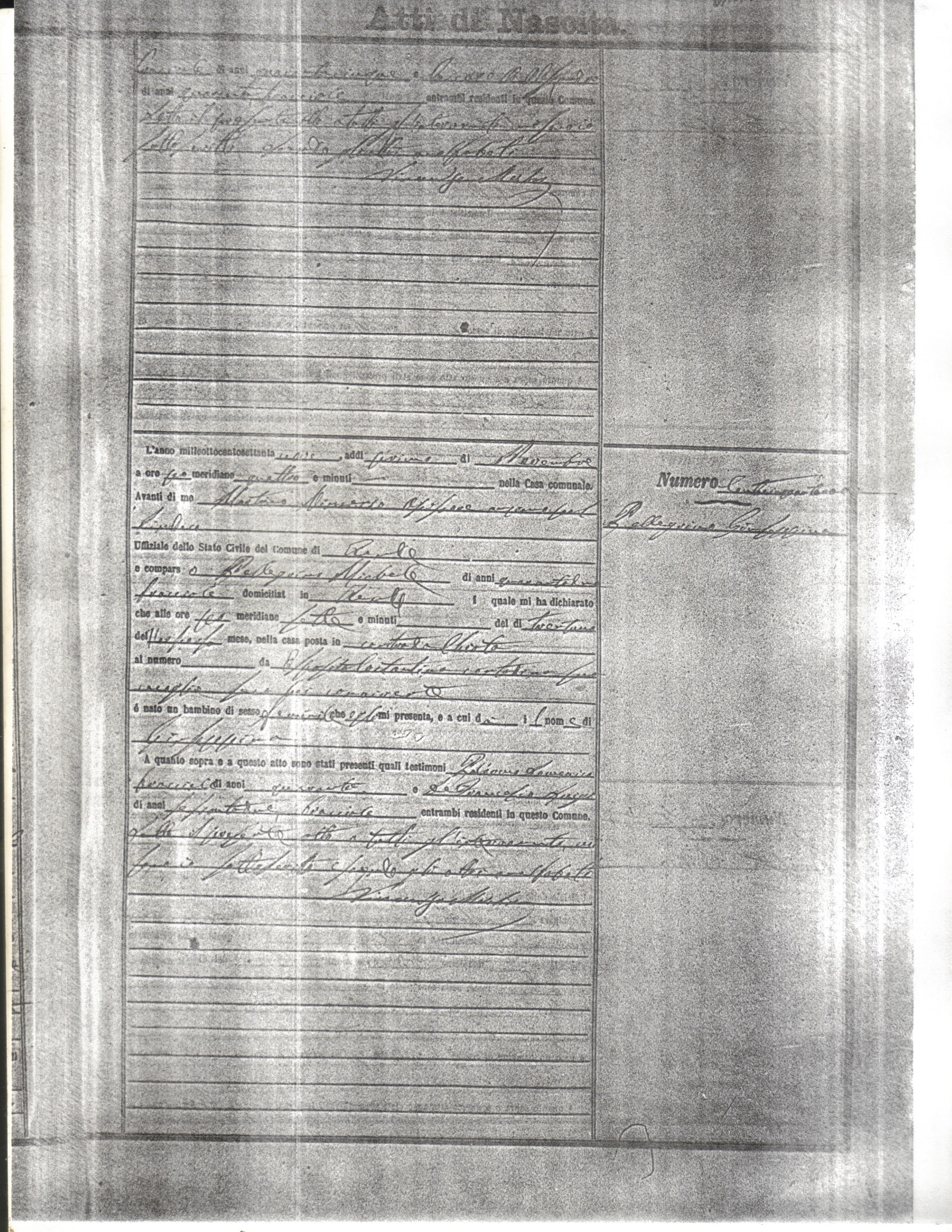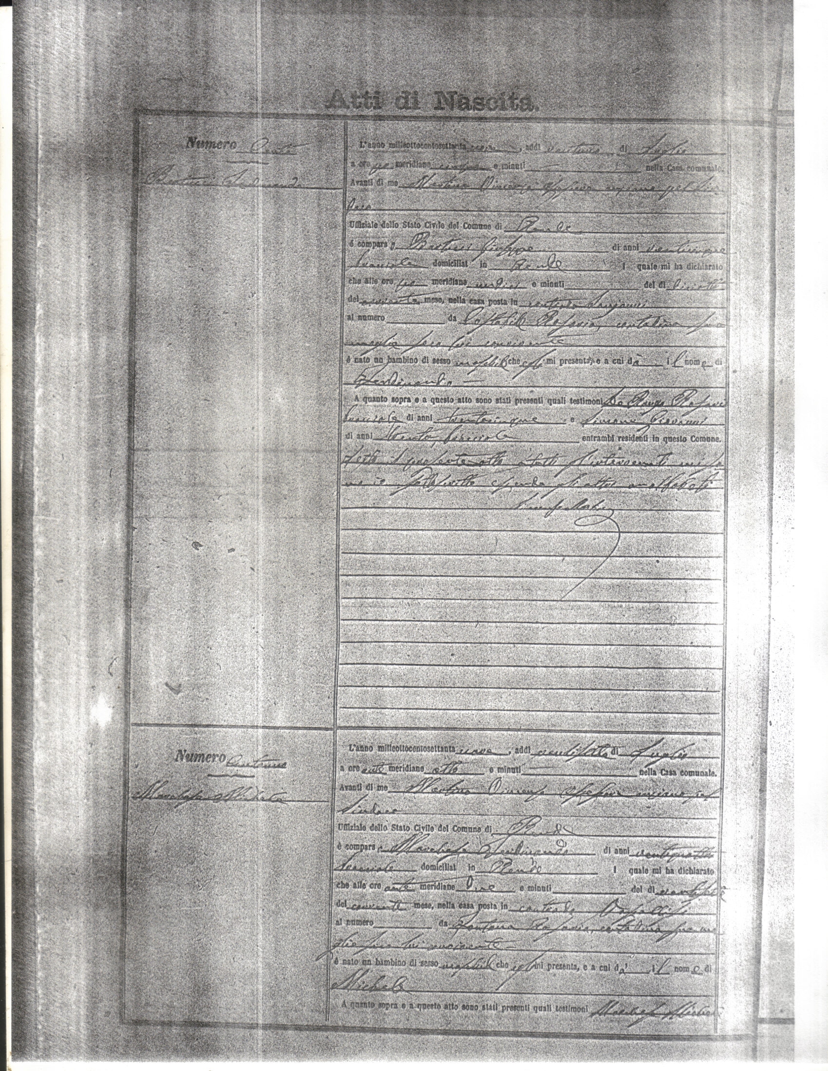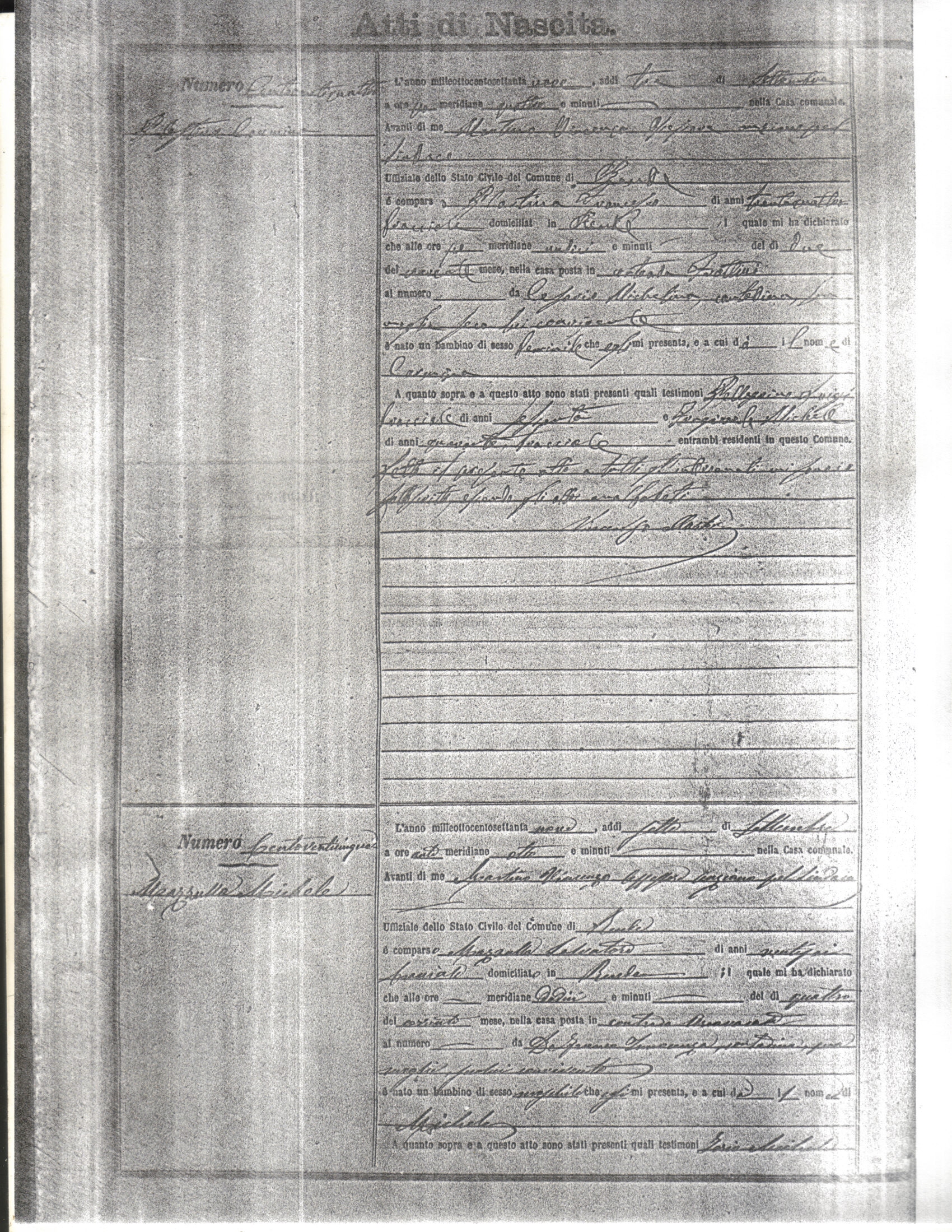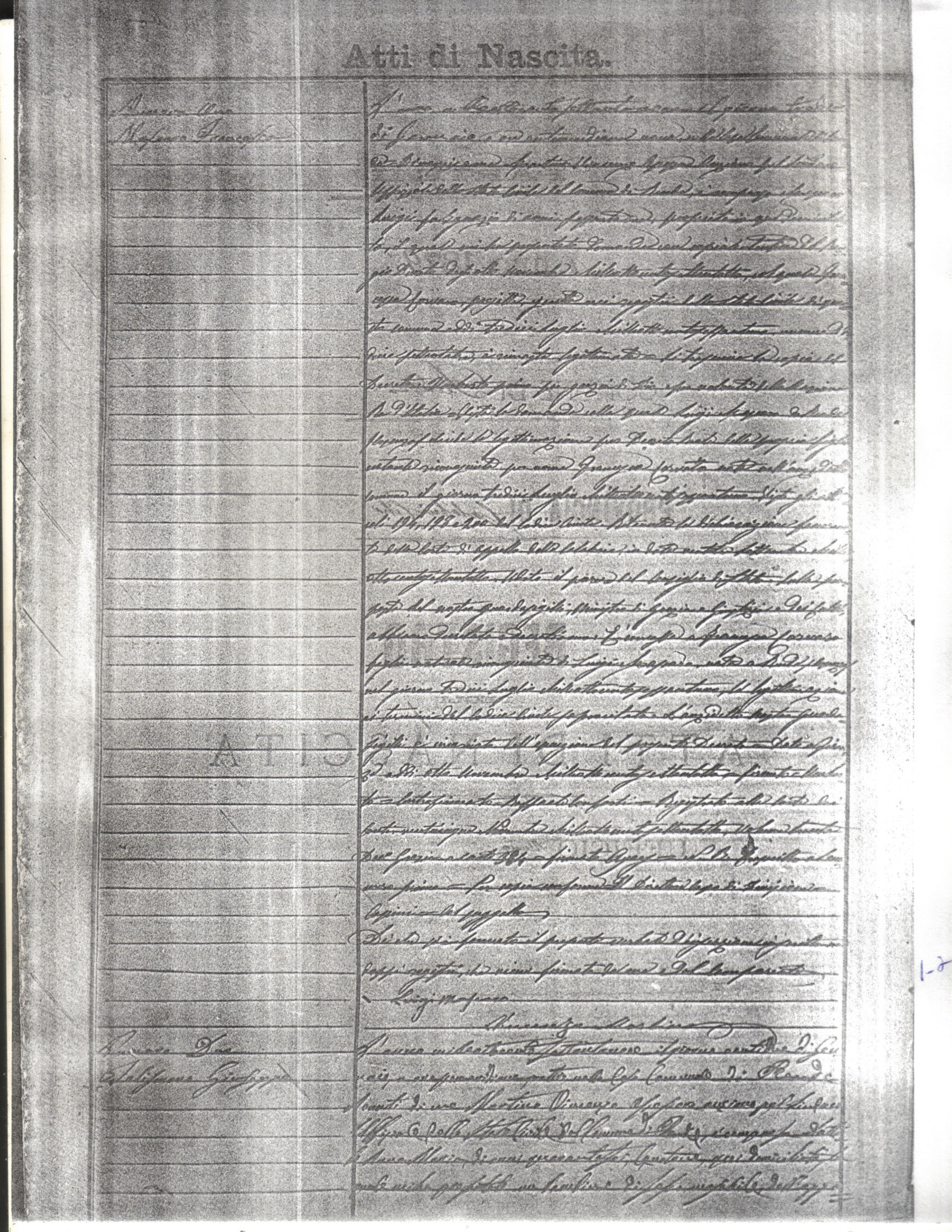 This page has the index to all the birth acts available for Rende That occured in 1879. The index give the atto (act) number which will be linked to a copy of the actual record on the table below. Please be patient while we get these records up. For a translation of the birth act form, visit our sister site, Montalto Uffugo.Net.