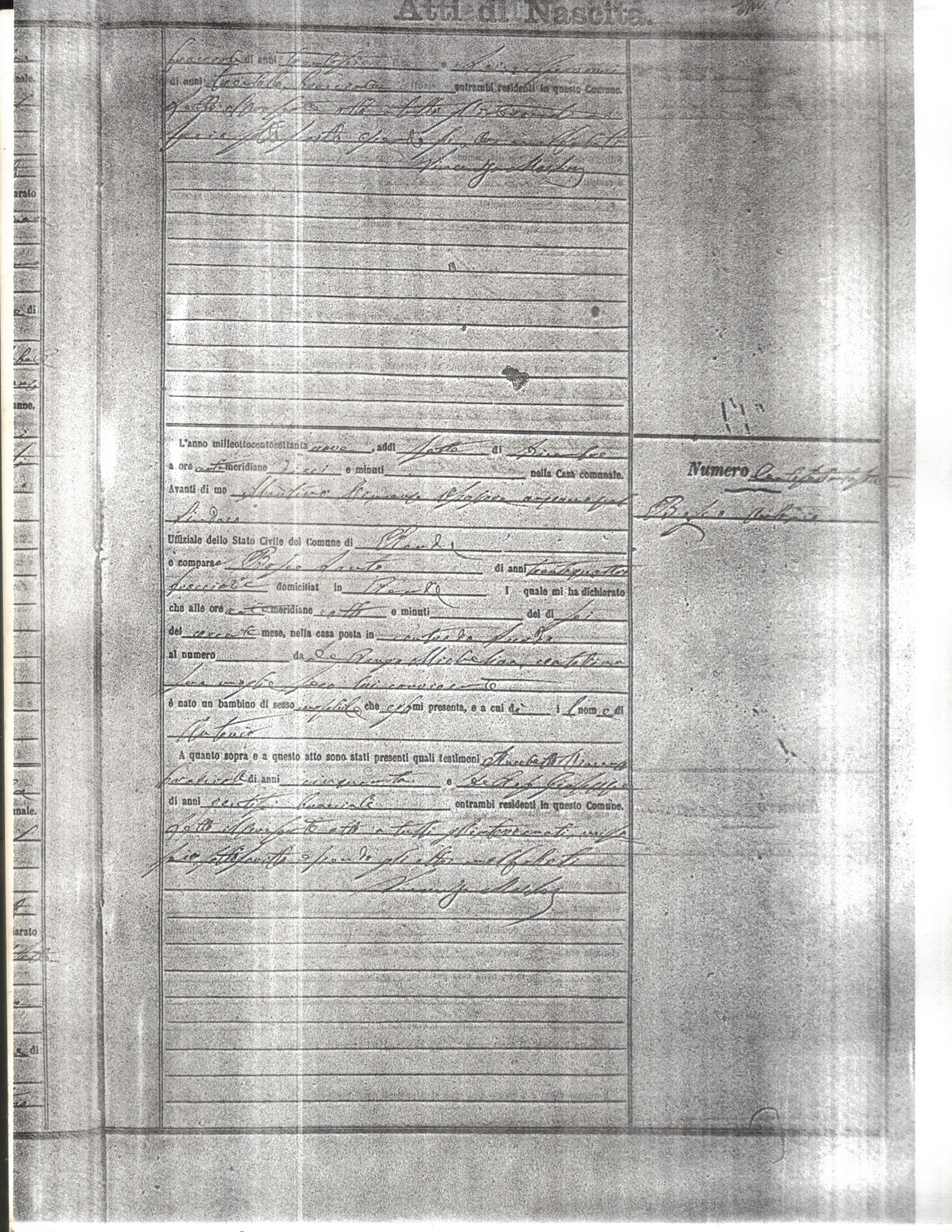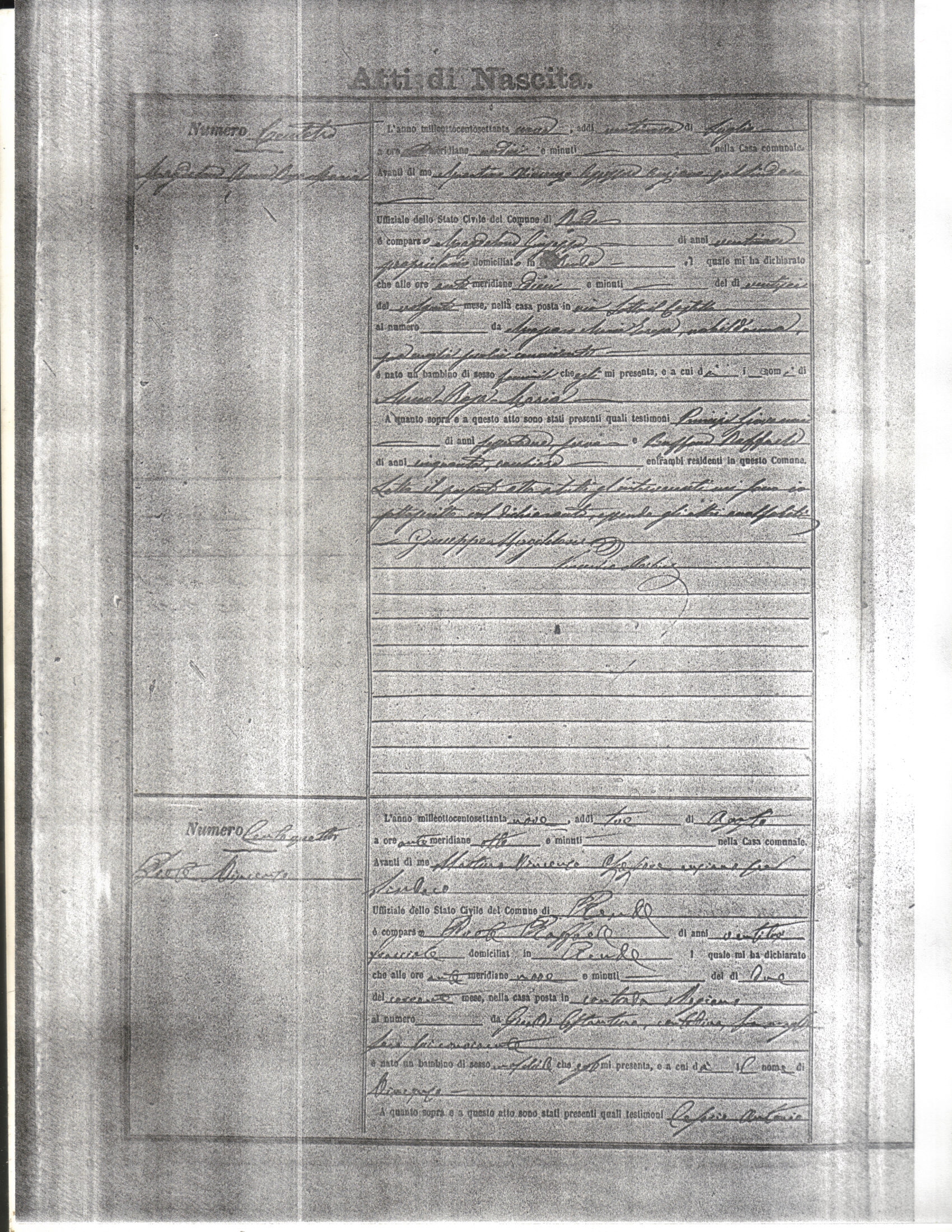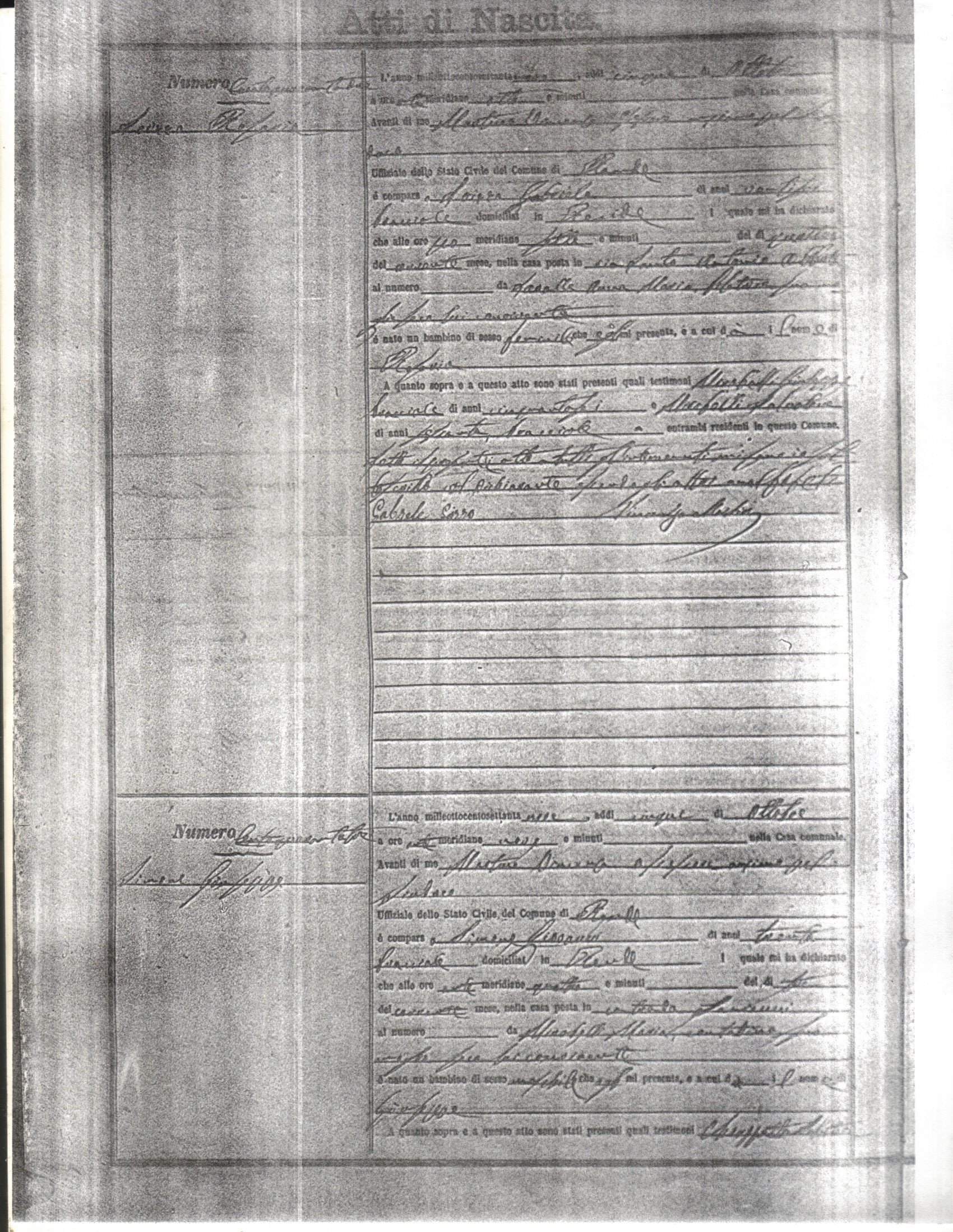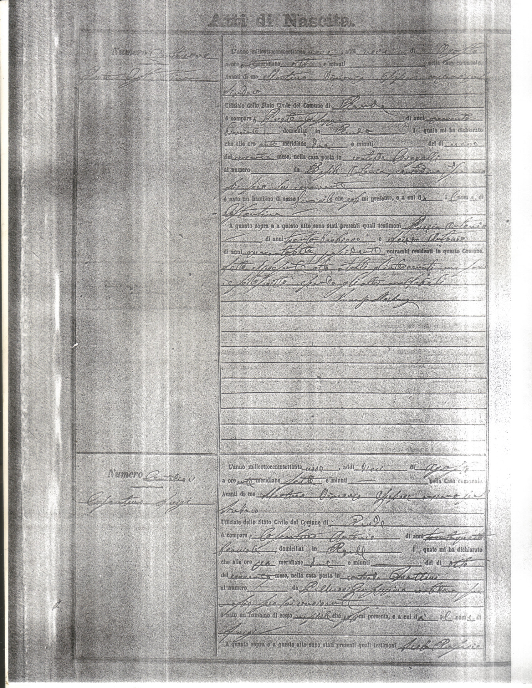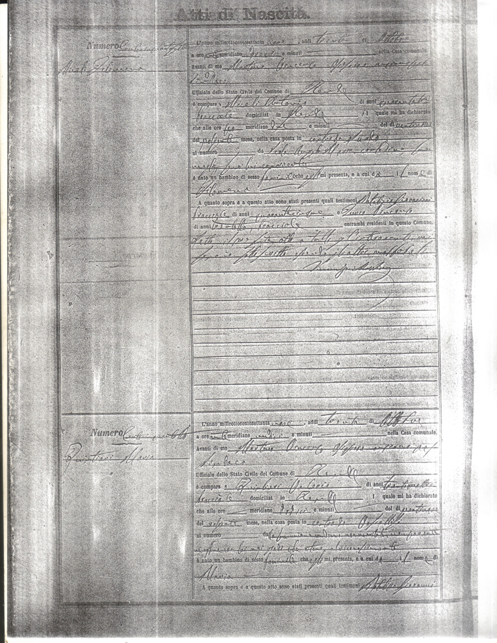 This page has the index to all the birth acts available for Rende That occured in 1879. The index give the atto (act) number which will be linked to a copy of the actual record on the table below. Please be patient while we get these records up. For a translation of the birth act form, visit our sister site, Montalto Uffugo.Net.