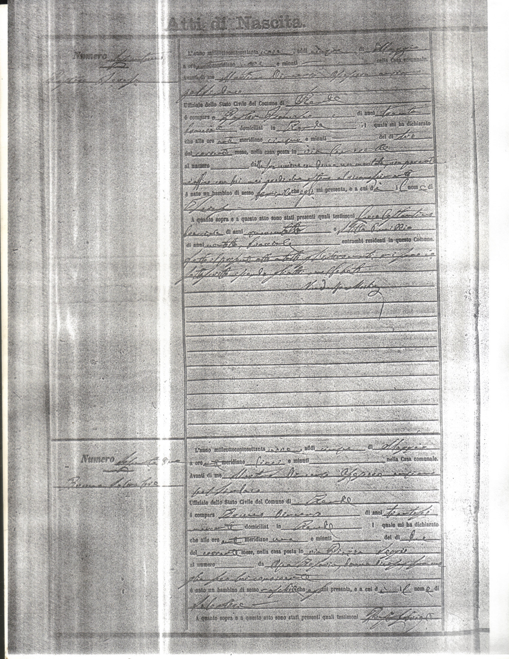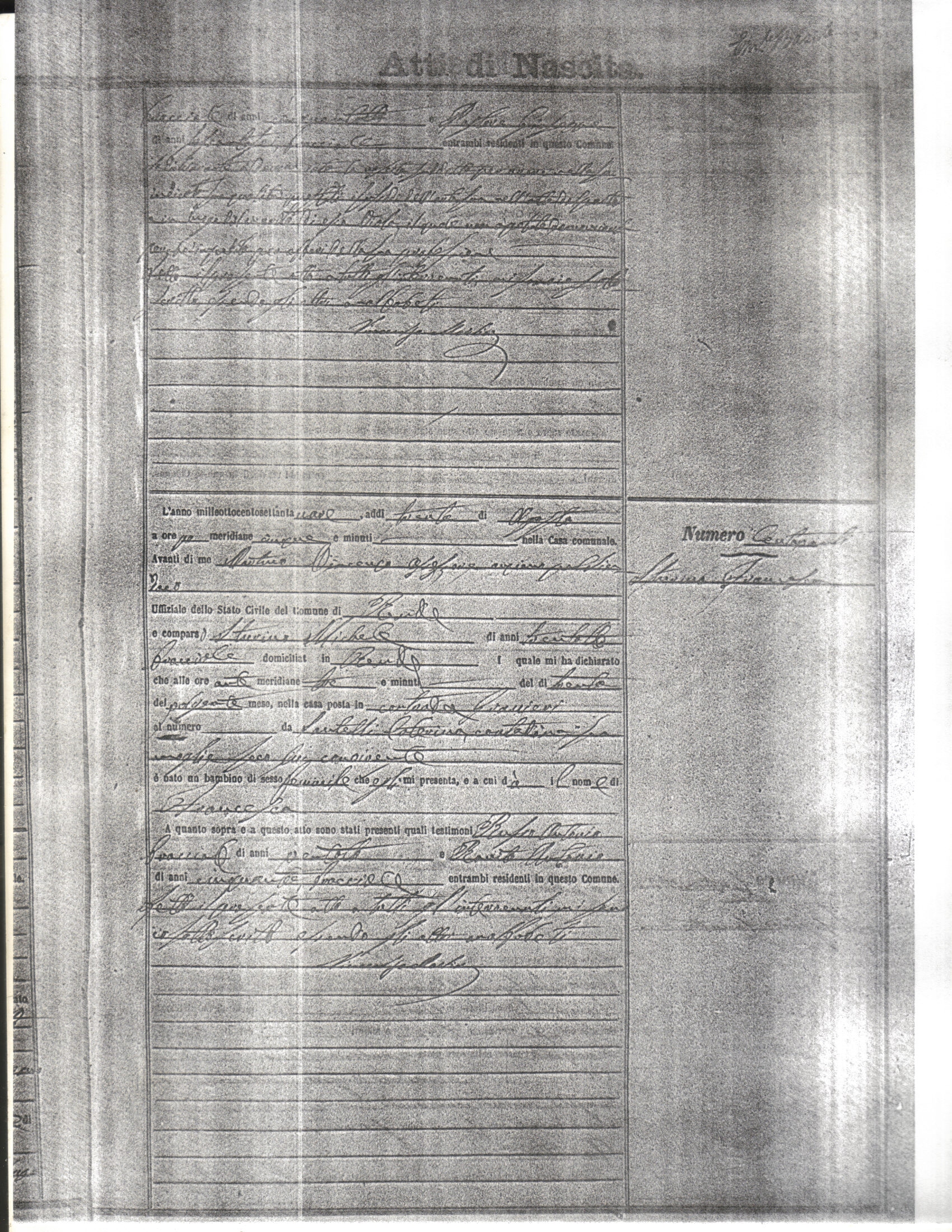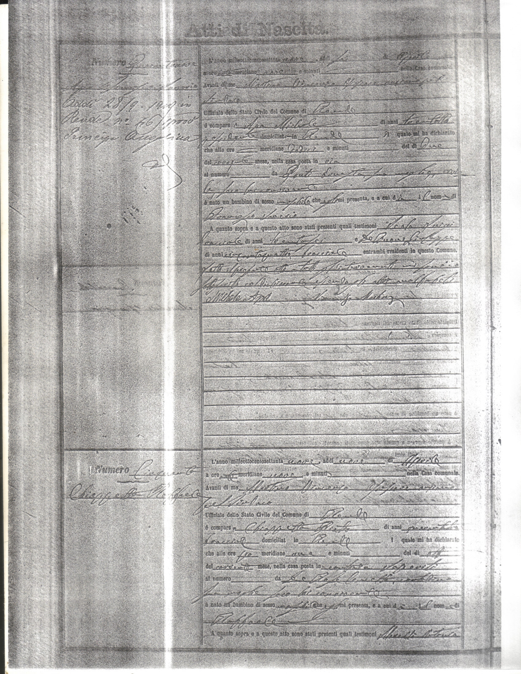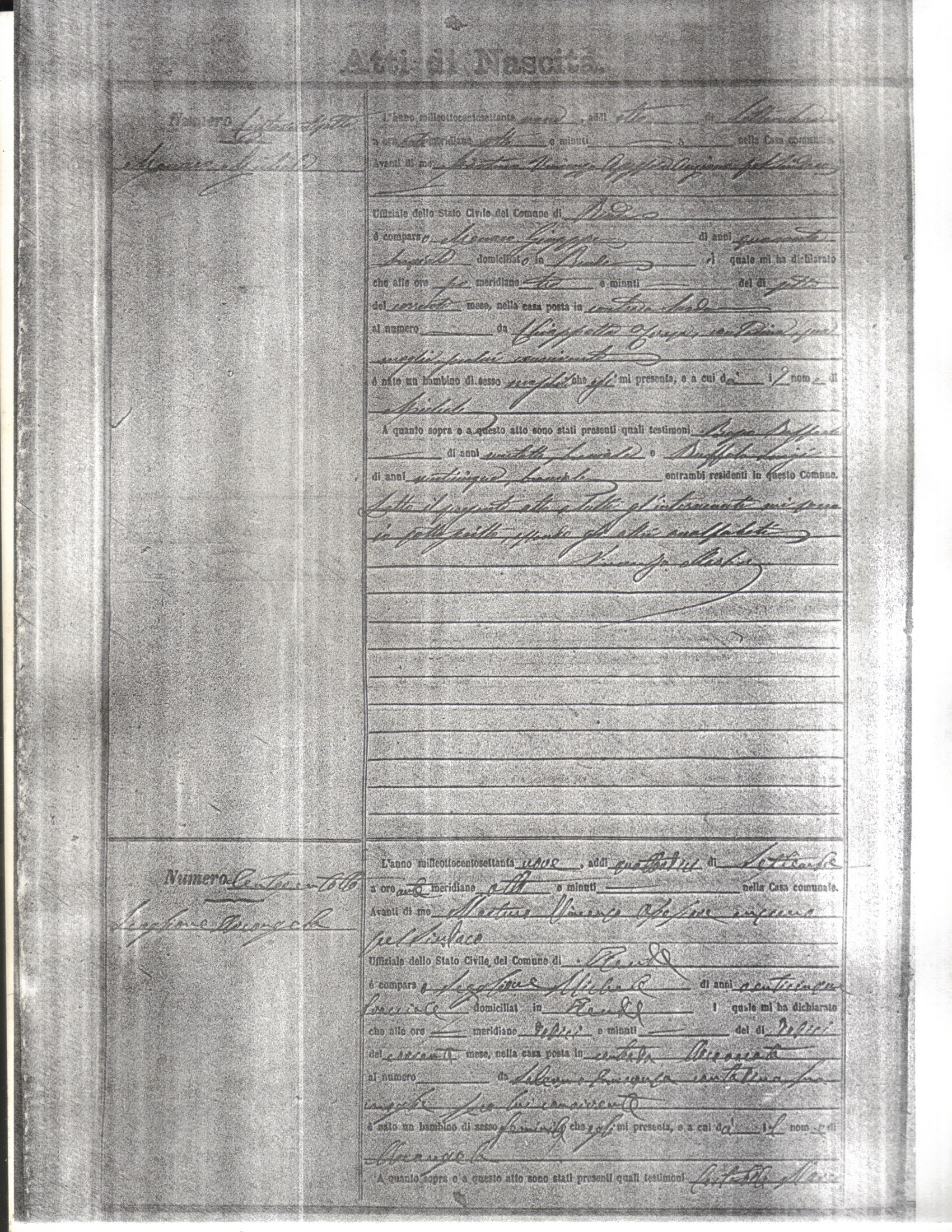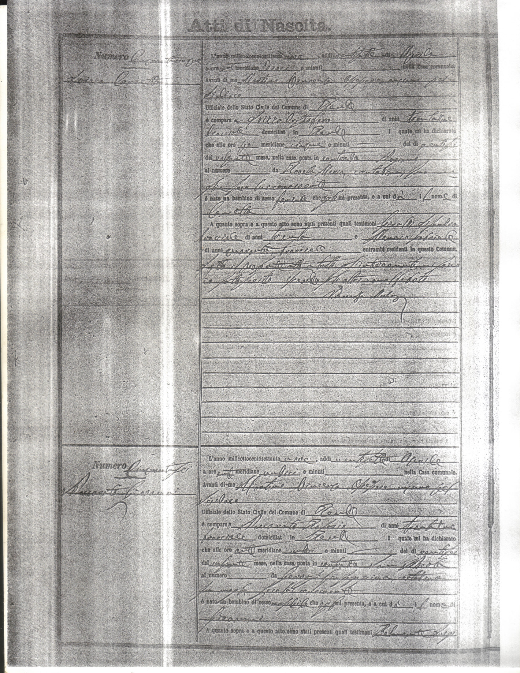 This page has the index to all the birth acts available for Rende That occured in 1879. The index give the atto (act) number which will be linked to a copy of the actual record on the table below. Please be patient while we get these records up. For a translation of the birth act form, visit our sister site, Montalto Uffugo.Net.