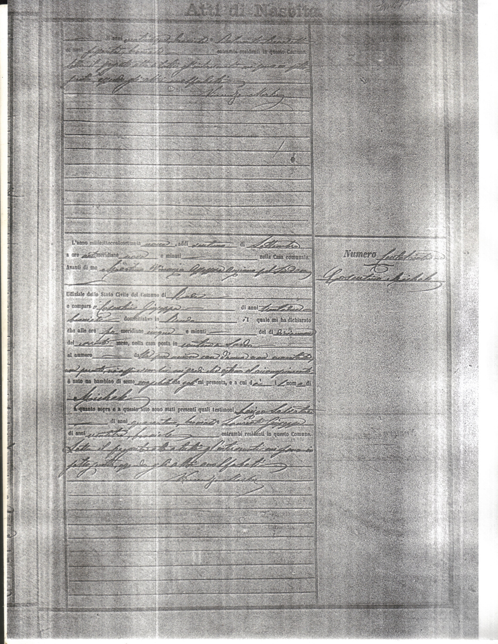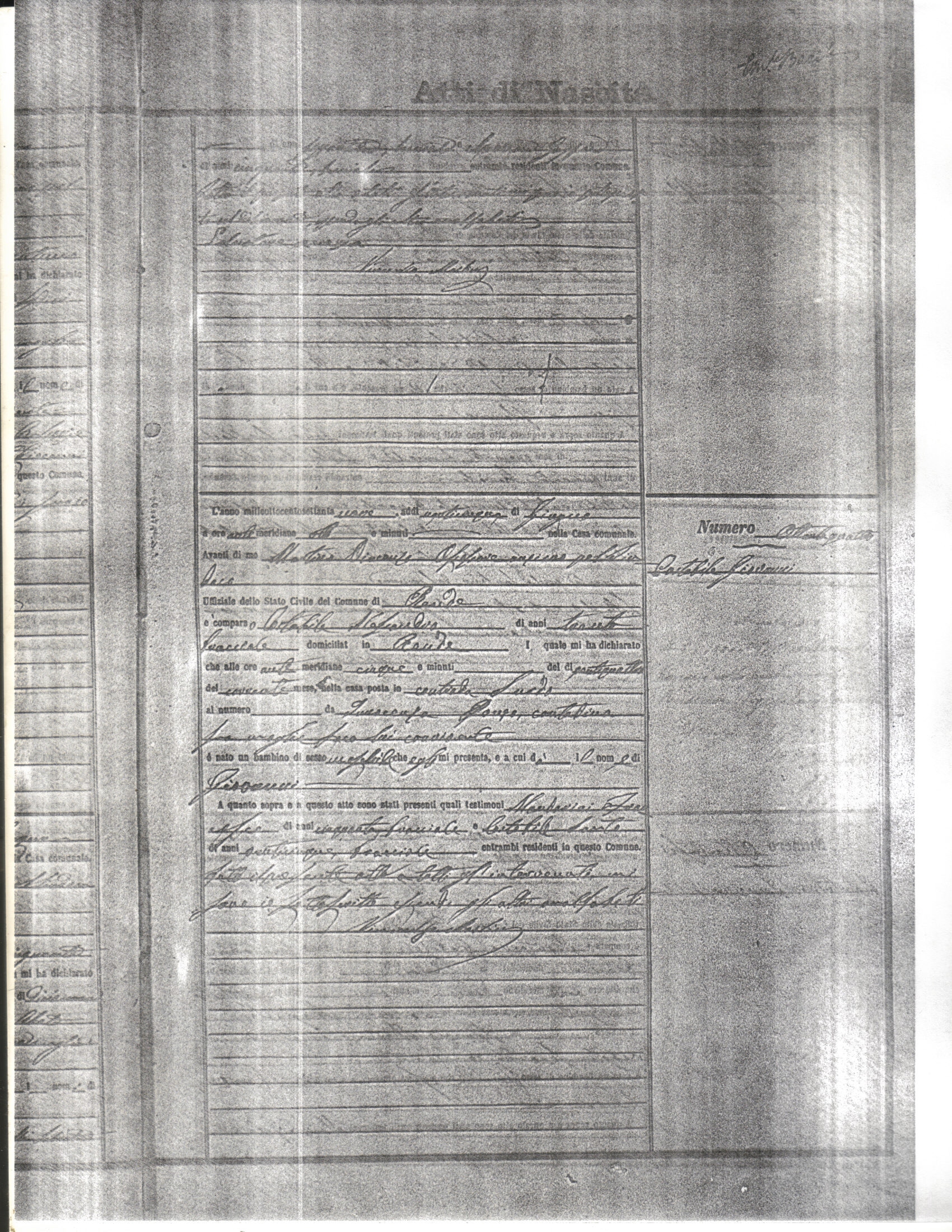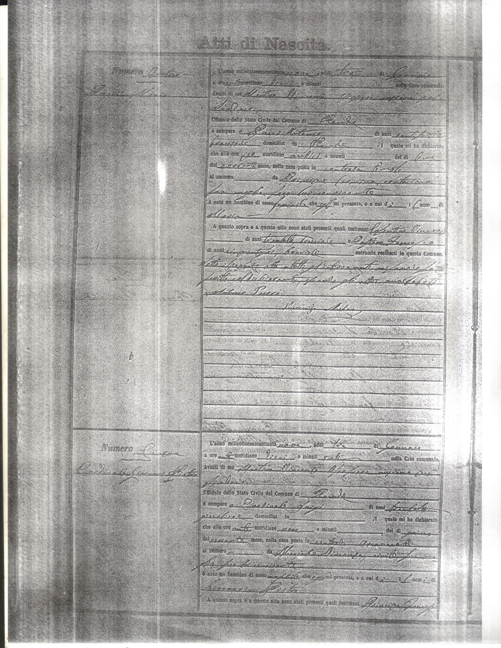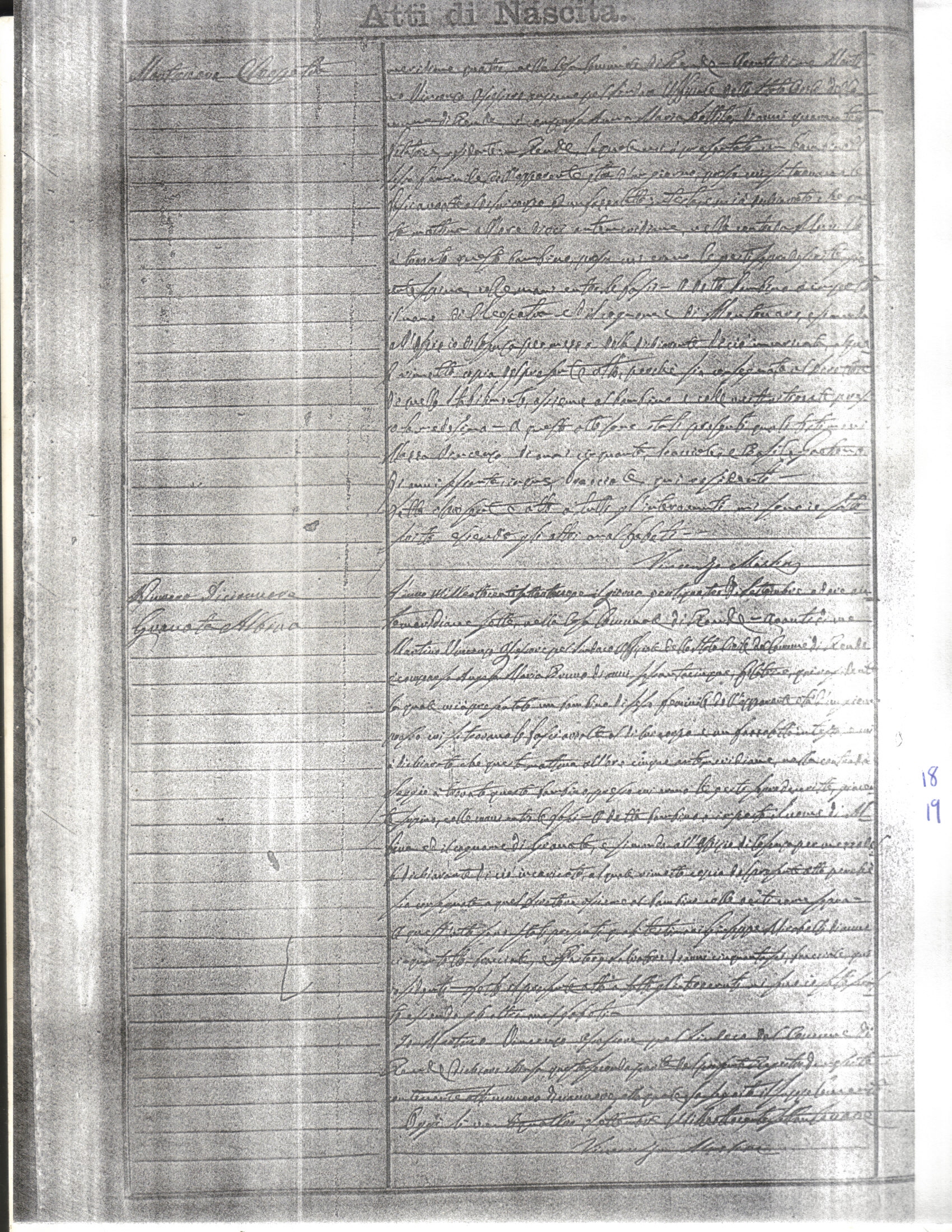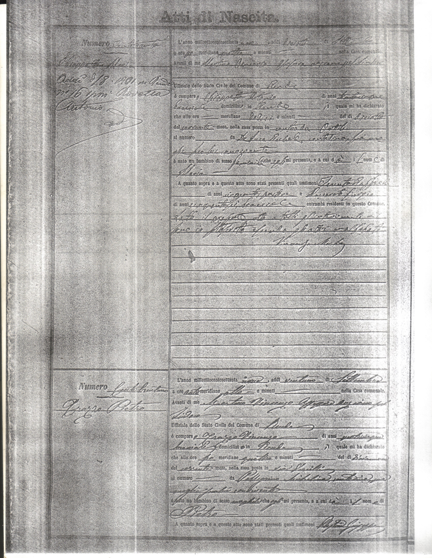 This page has the index to all the birth acts available for Rende That occured in 1879. The index give the atto (act) number which will be linked to a copy of the actual record on the table below. Please be patient while we get these records up. For a translation of the birth act form, visit our sister site, Montalto Uffugo.Net.