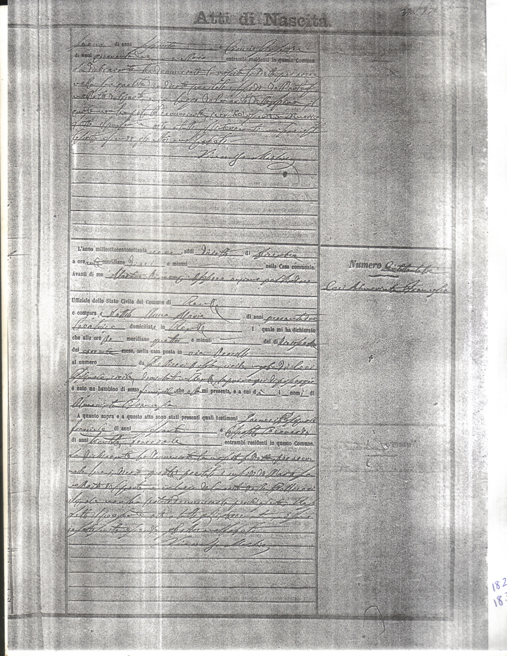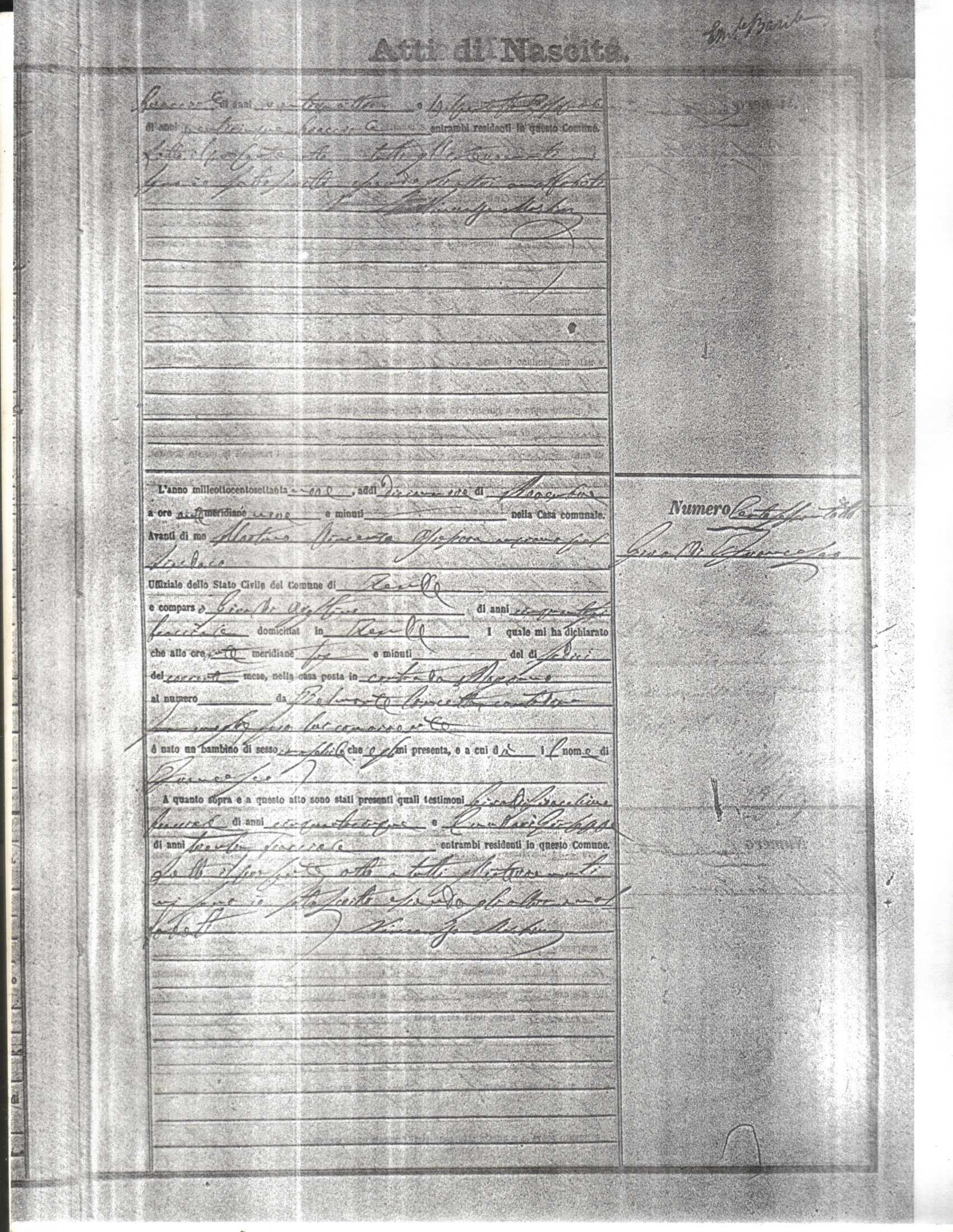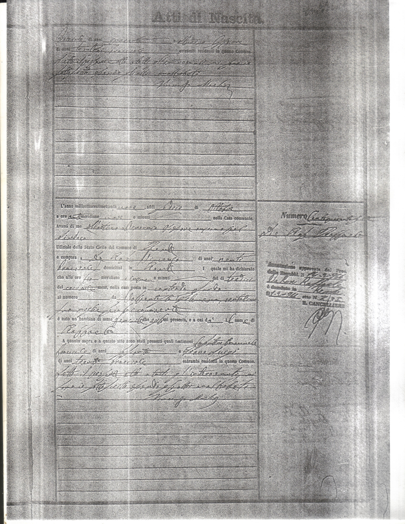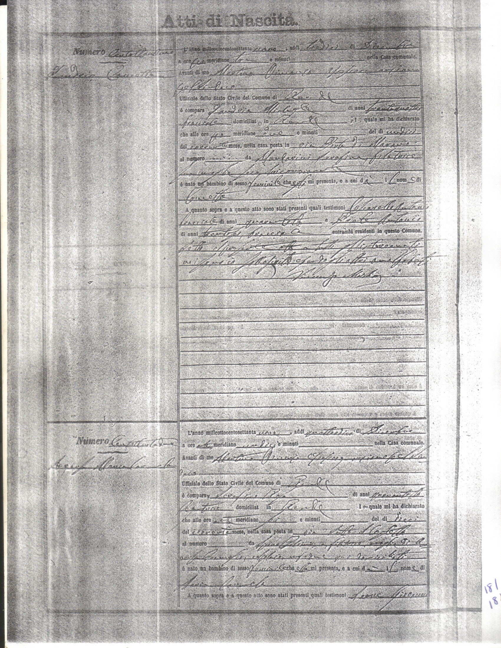 This page has the index to all the birth acts available for Rende That occured in 1879. The index give the atto (act) number which will be linked to a copy of the actual record on the table below. Please be patient while we get these records up. For a translation of the birth act form, visit our sister site, Montalto Uffugo.Net.