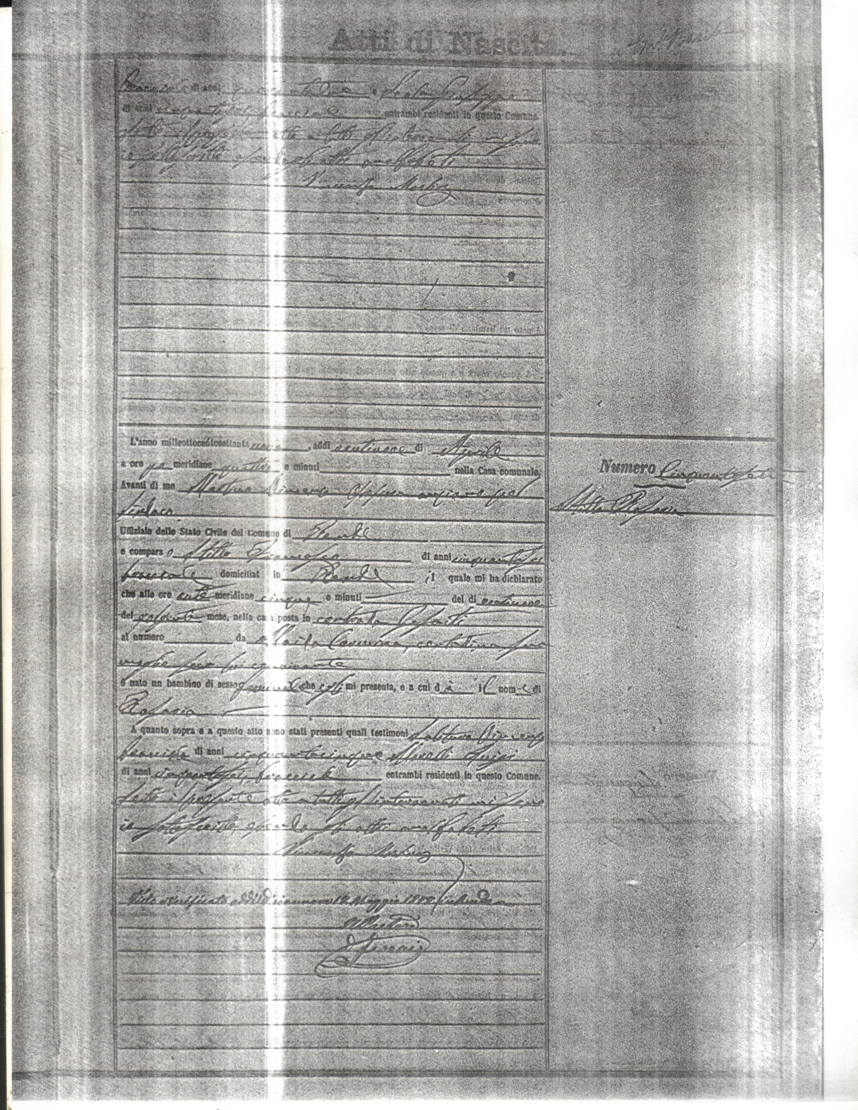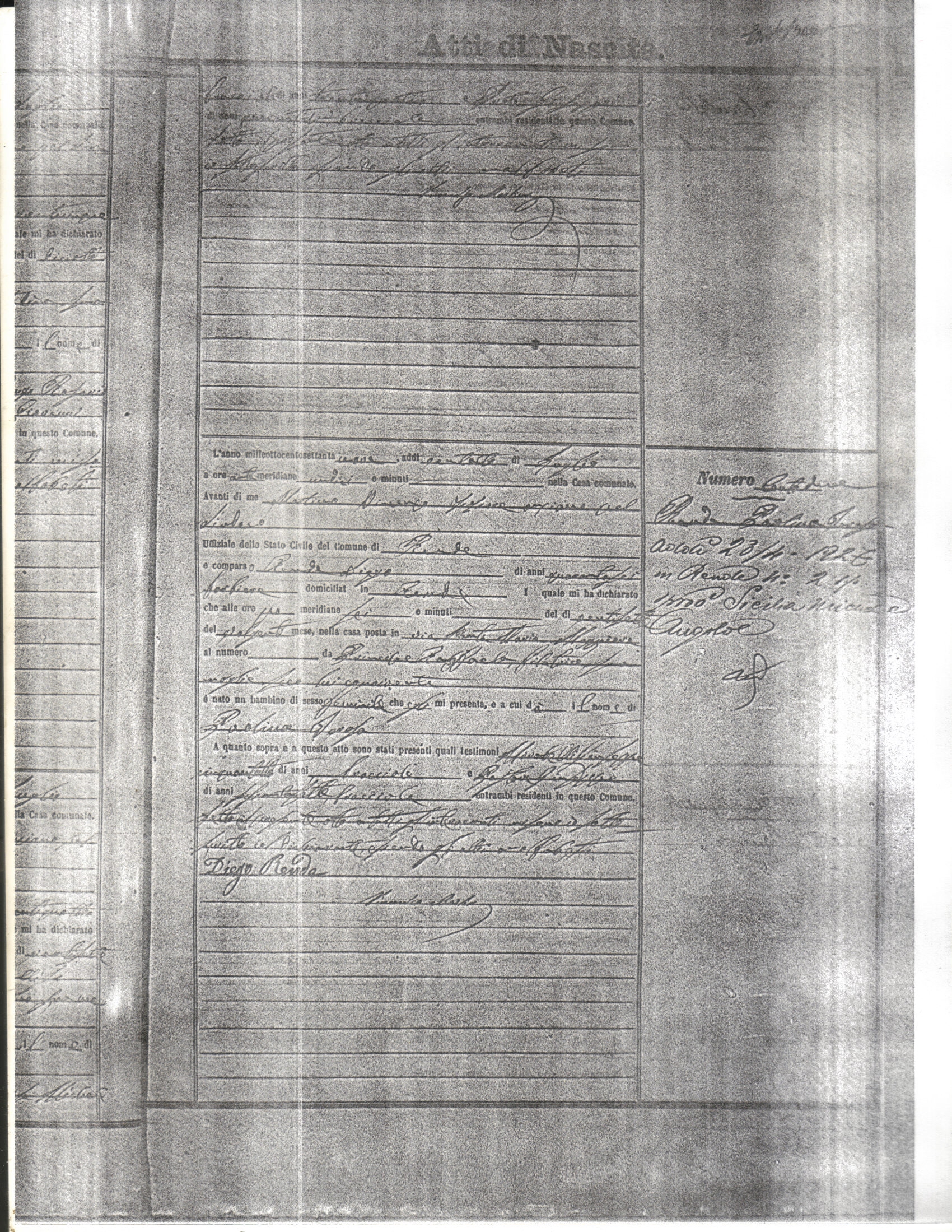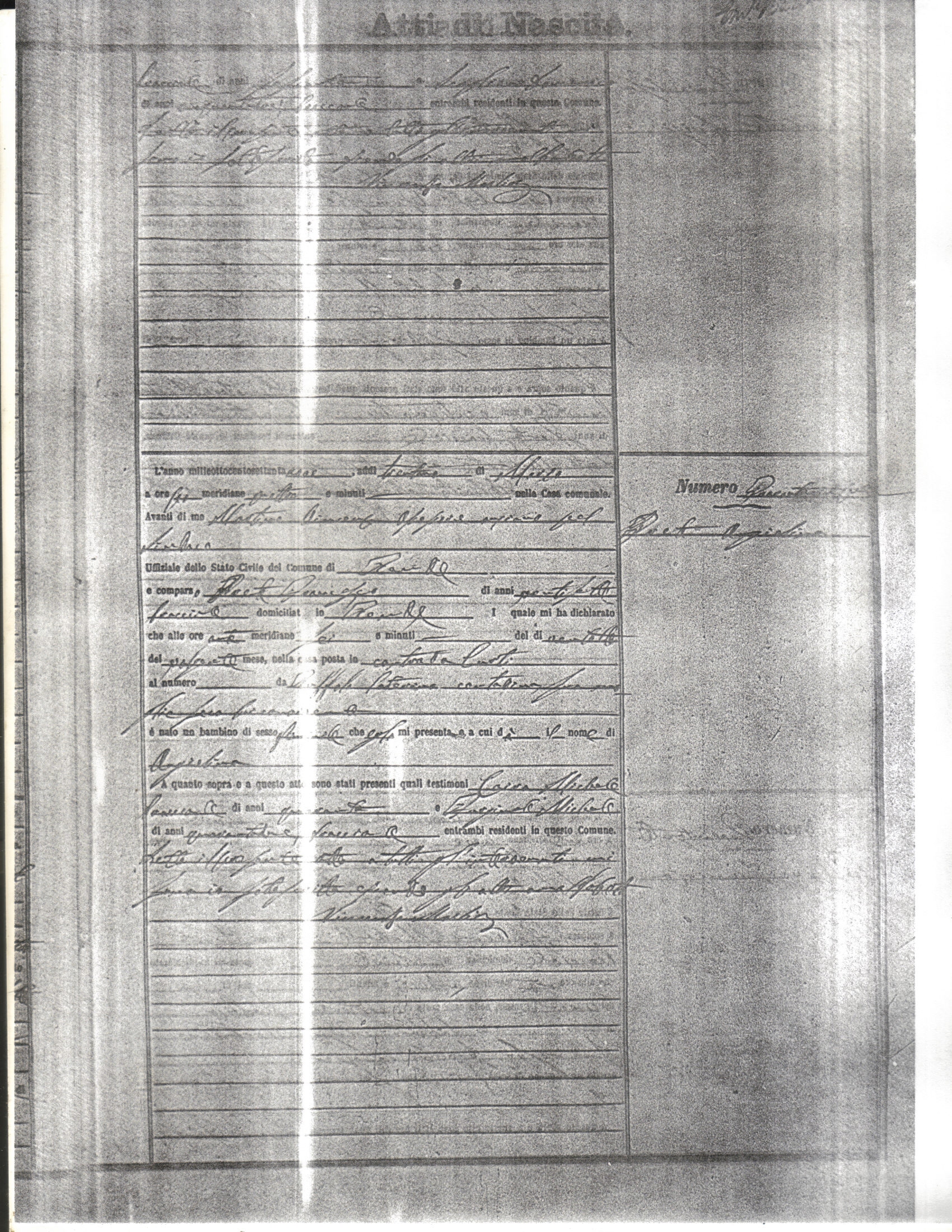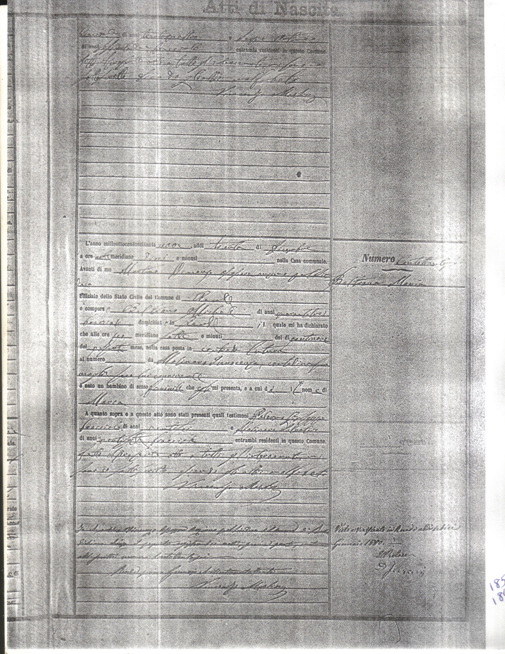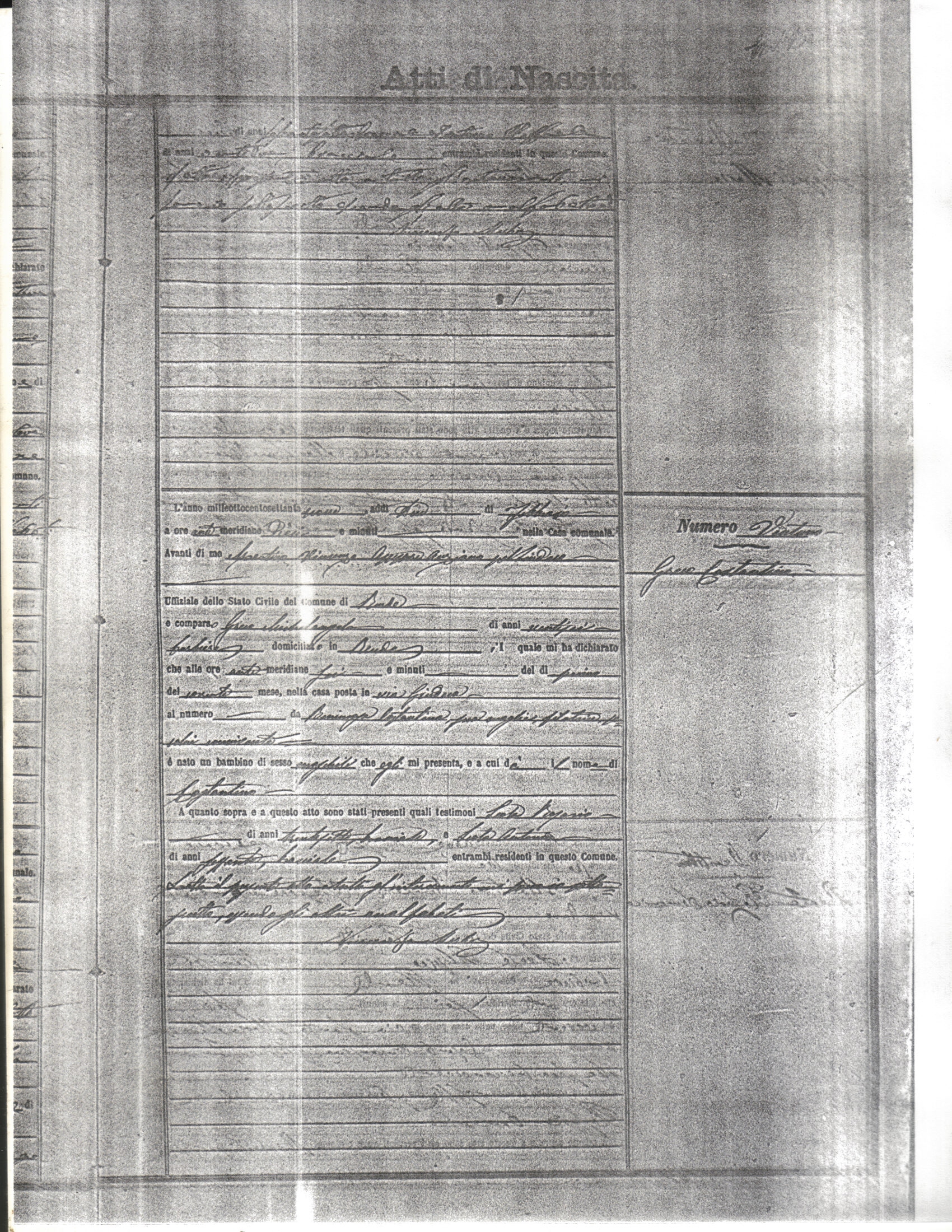This page has the index to all the birth acts available for Rende That occured in 1879. The index give the atto (act) number which will be linked to a copy of the actual record on the table below. Please be patient while we get these records up. For a translation of the birth act form, visit our sister site, Montalto Uffugo.Net.