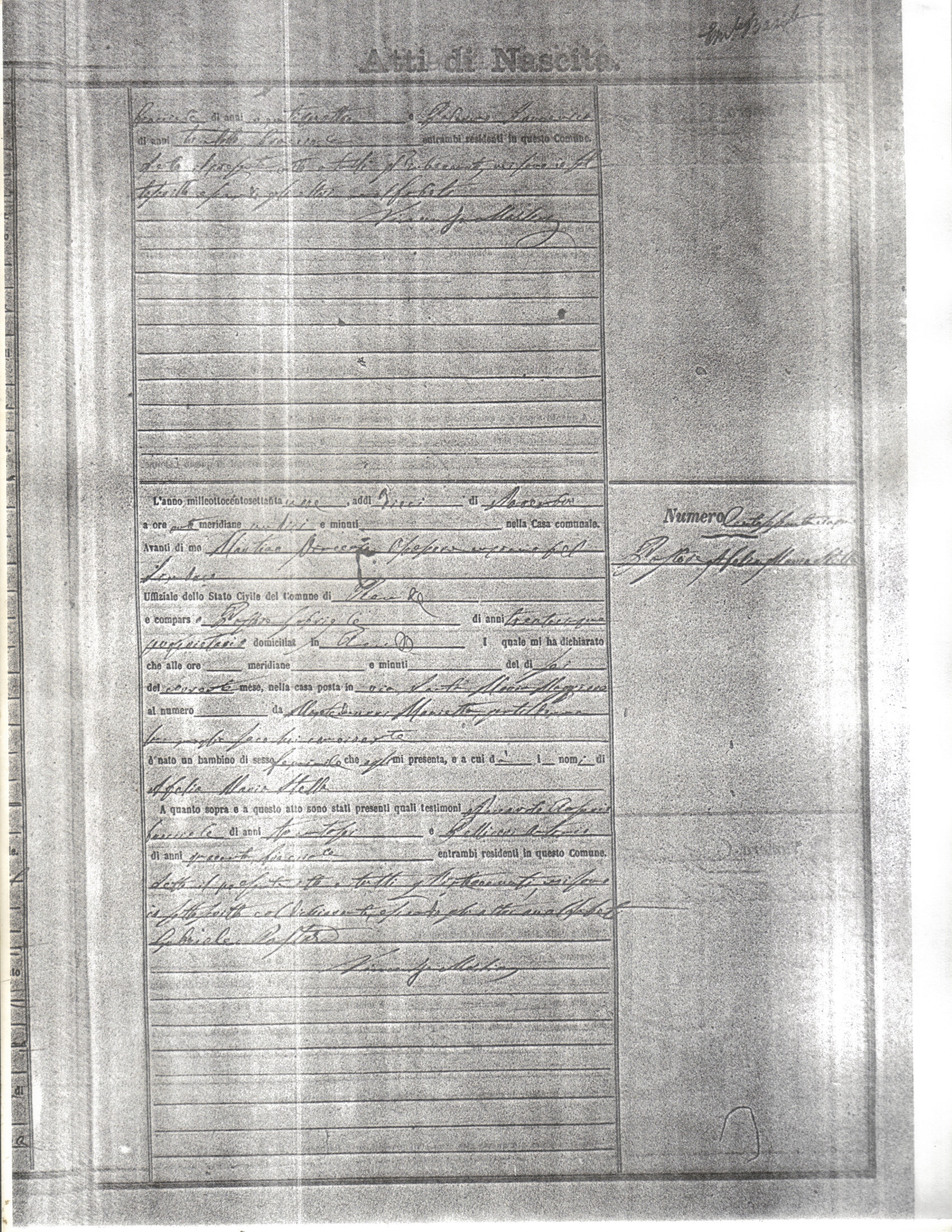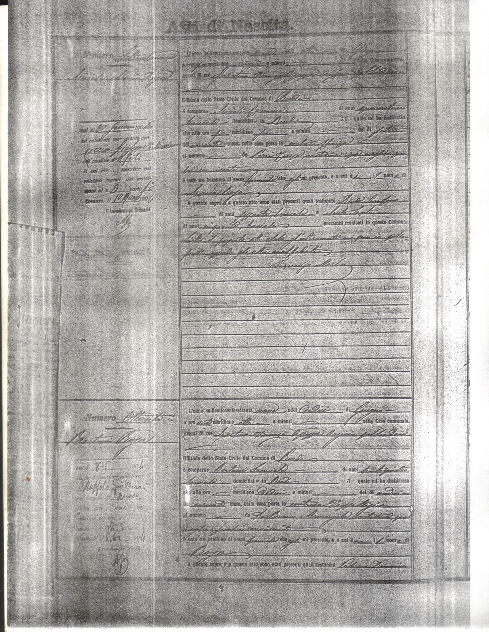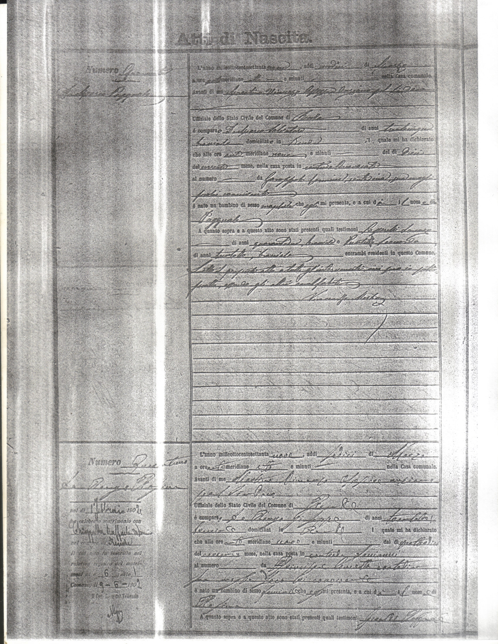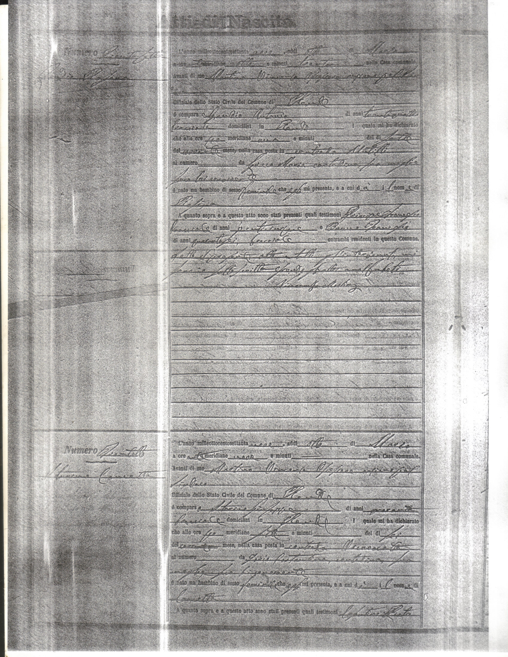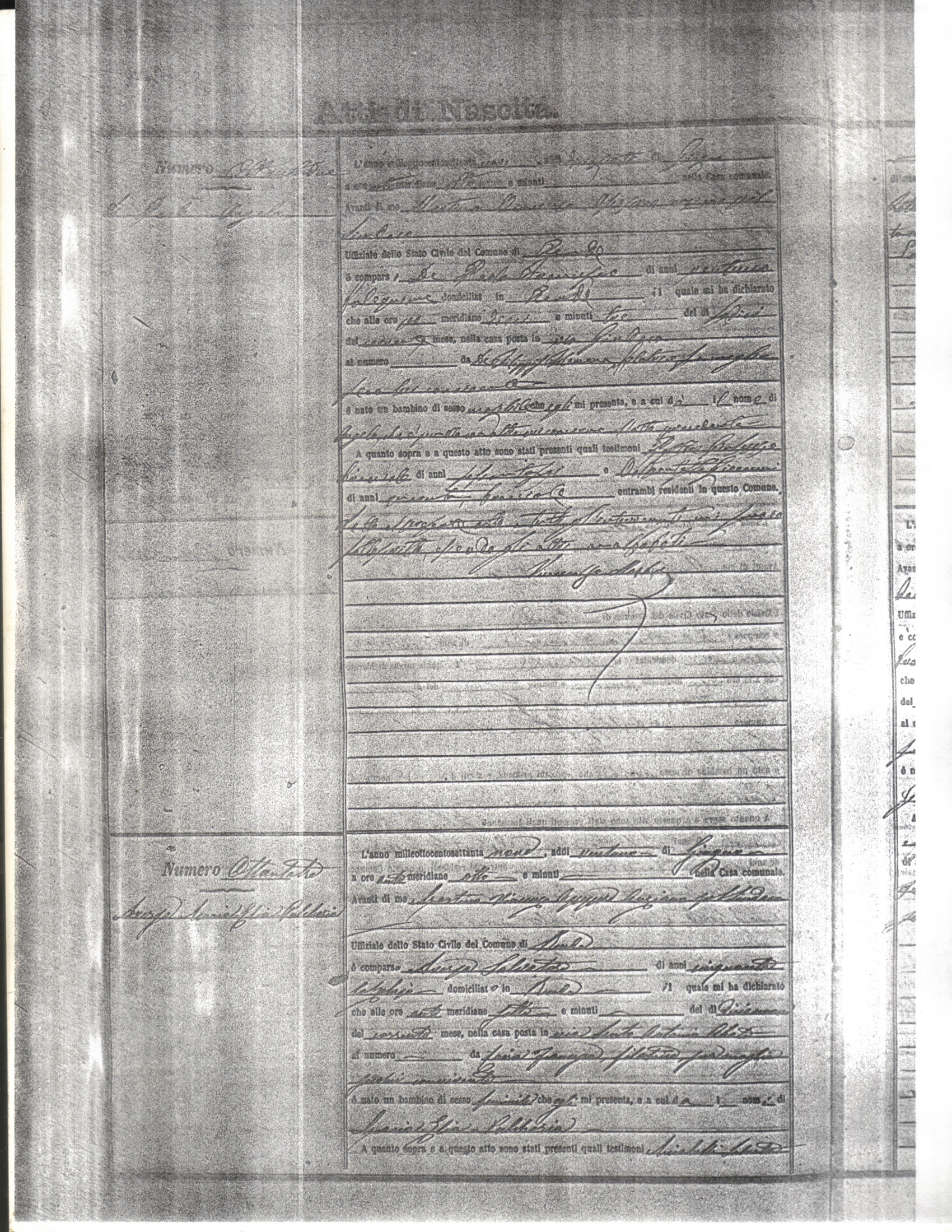 This page has the index to all the birth acts available for Rende That occured in 1879. The index give the atto (act) number which will be linked to a copy of the actual record on the table below. Please be patient while we get these records up. For a translation of the birth act form, visit our sister site, Montalto Uffugo.Net.