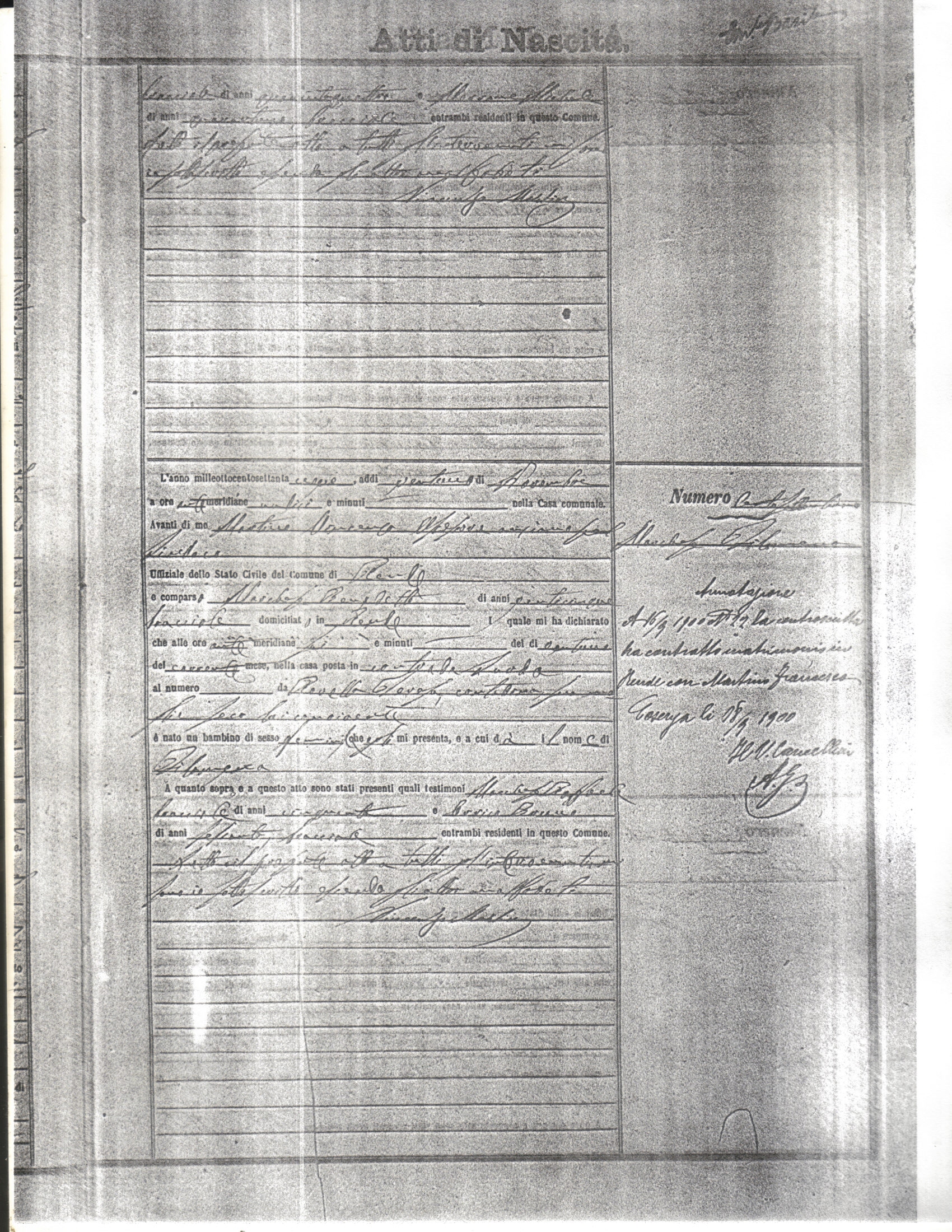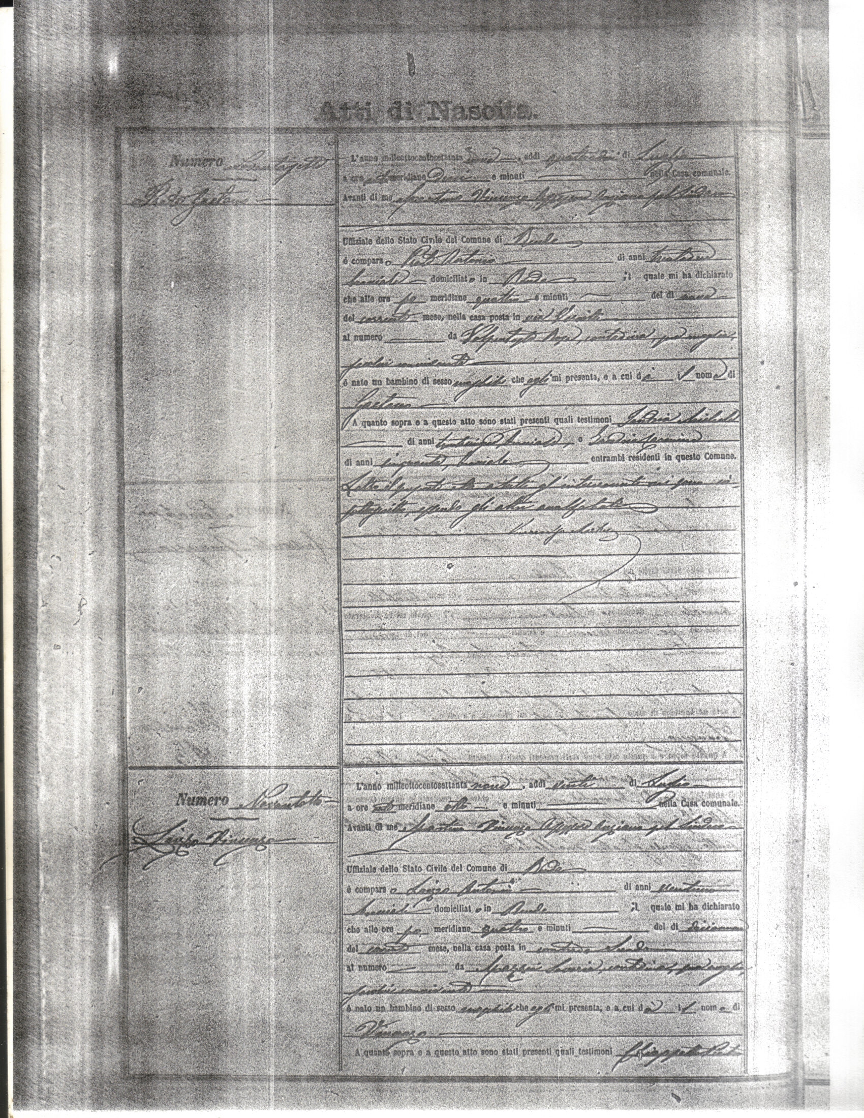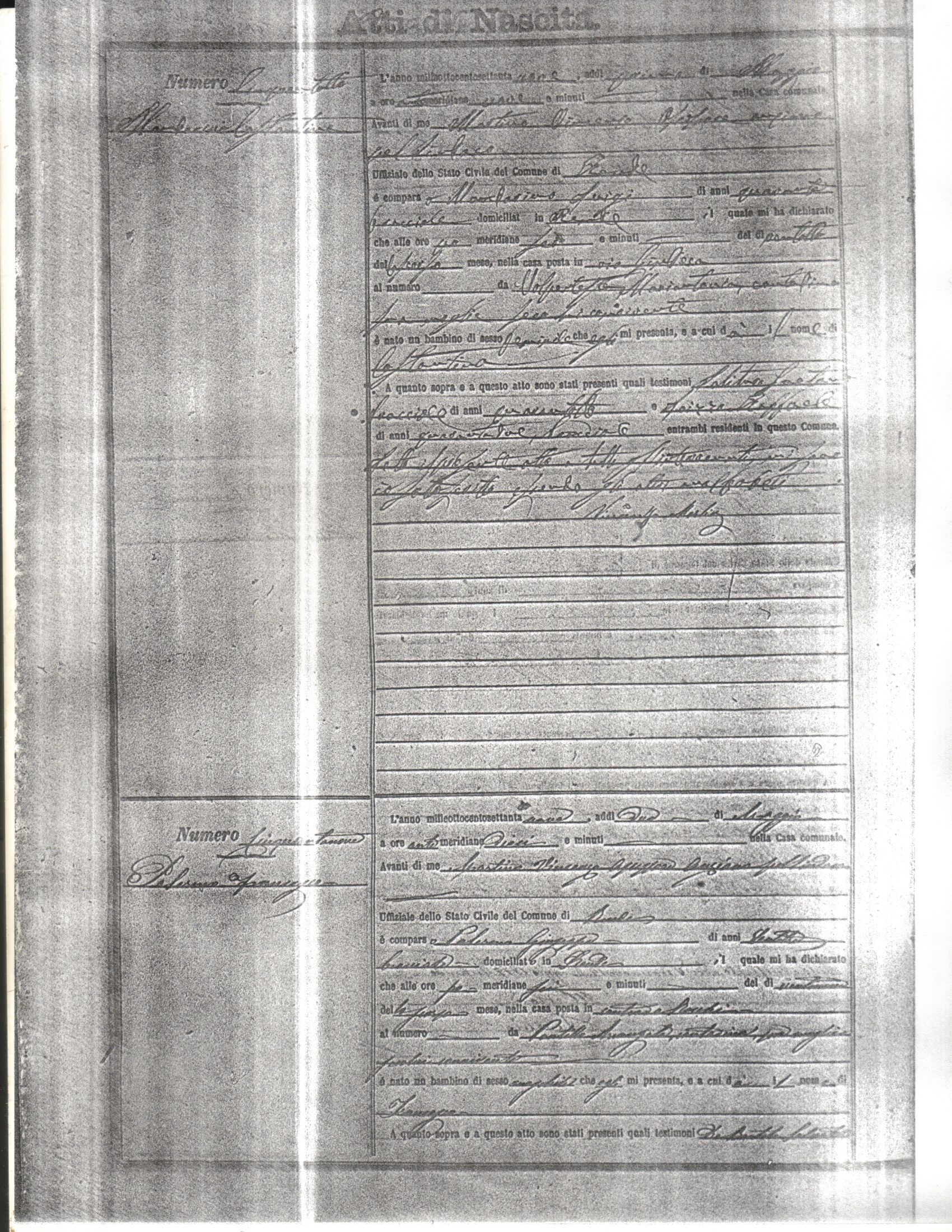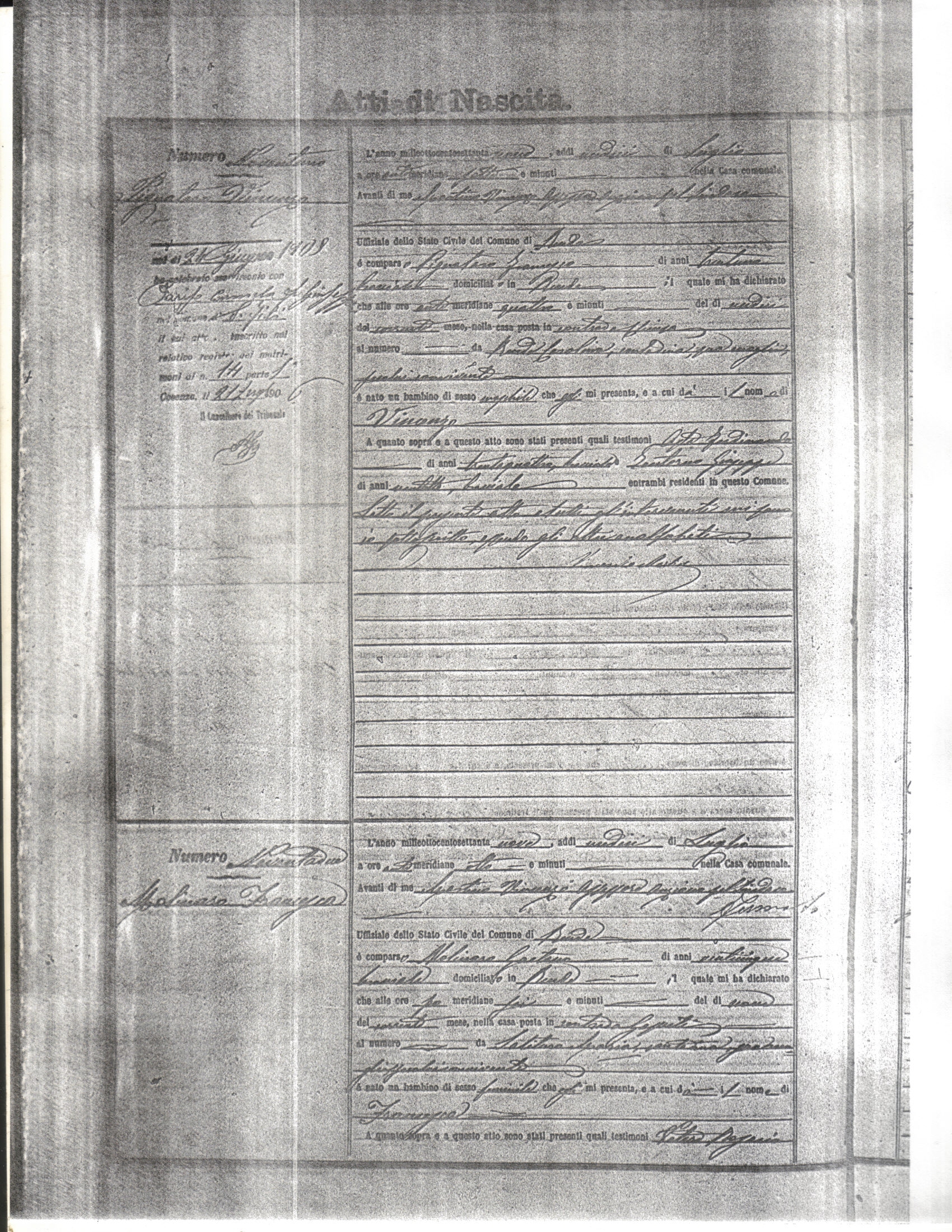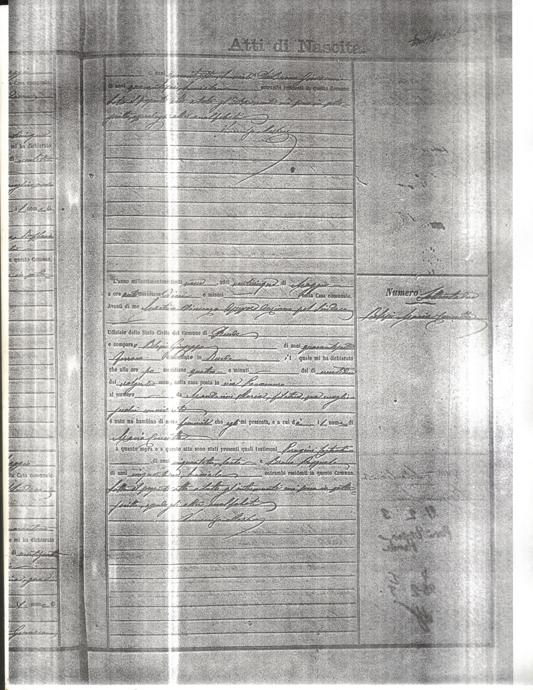 This page has the index to all the birth acts available for Rende That occured in 1879. The index give the atto (act) number which will be linked to a copy of the actual record on the table below. Please be patient while we get these records up. For a translation of the birth act form, visit our sister site, Montalto Uffugo.Net.