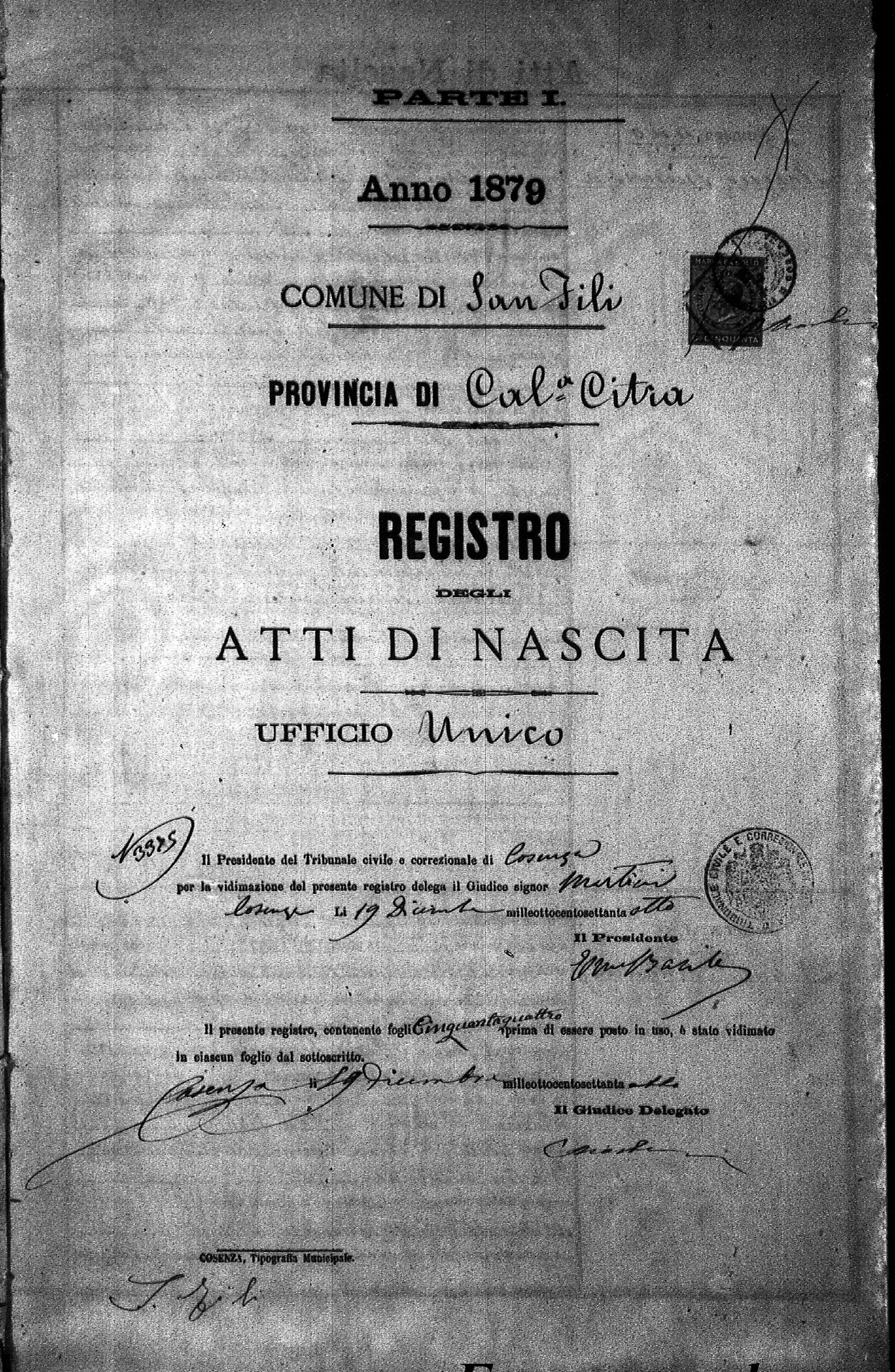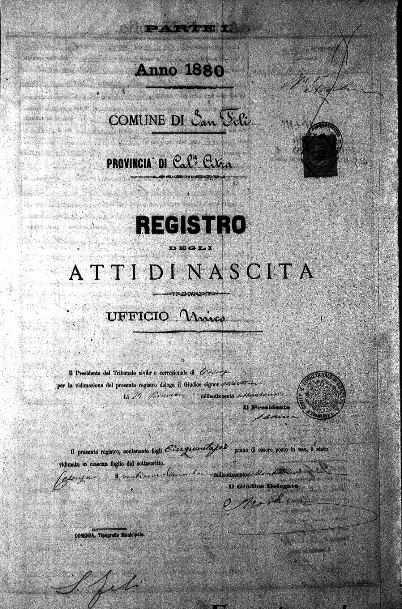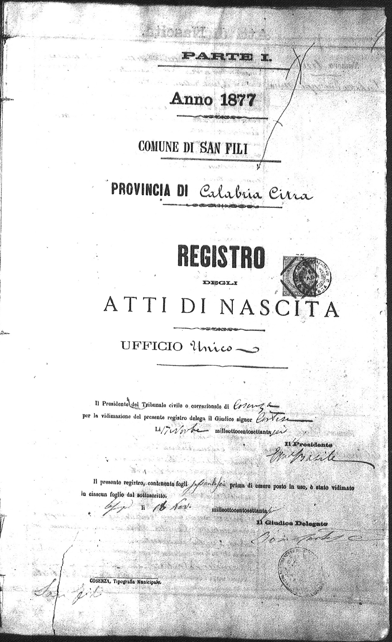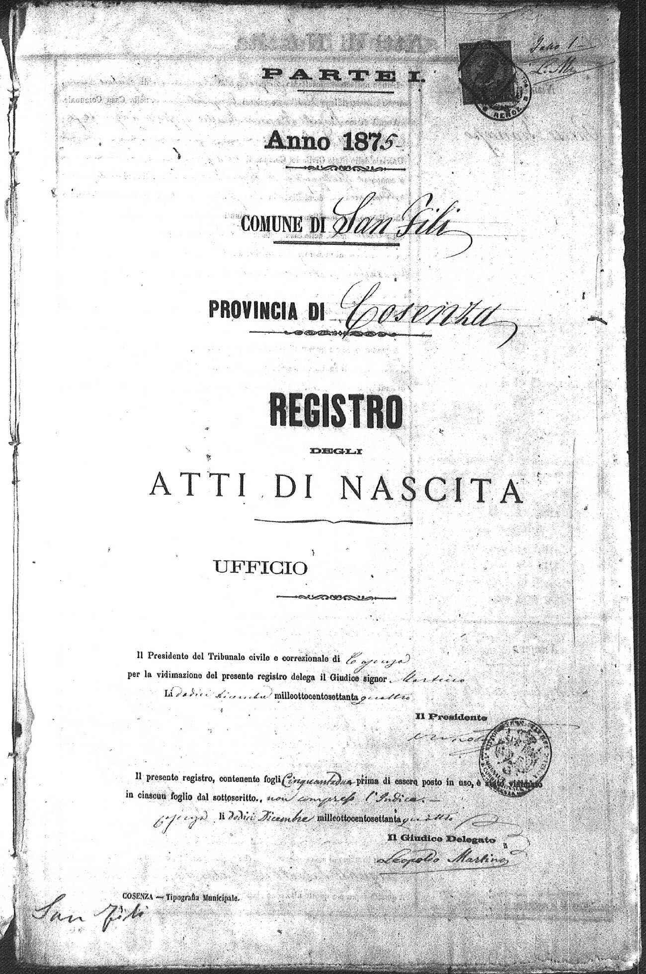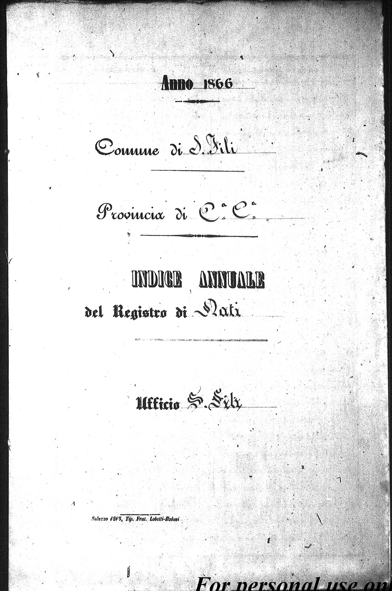 Indexes for birth Acts filed in the State Civil Office of San Fili. The Indexes are in alphabetical order by surname and contain the child's name, the mother's name, the father's name and the act number. The birth years available are listed below.