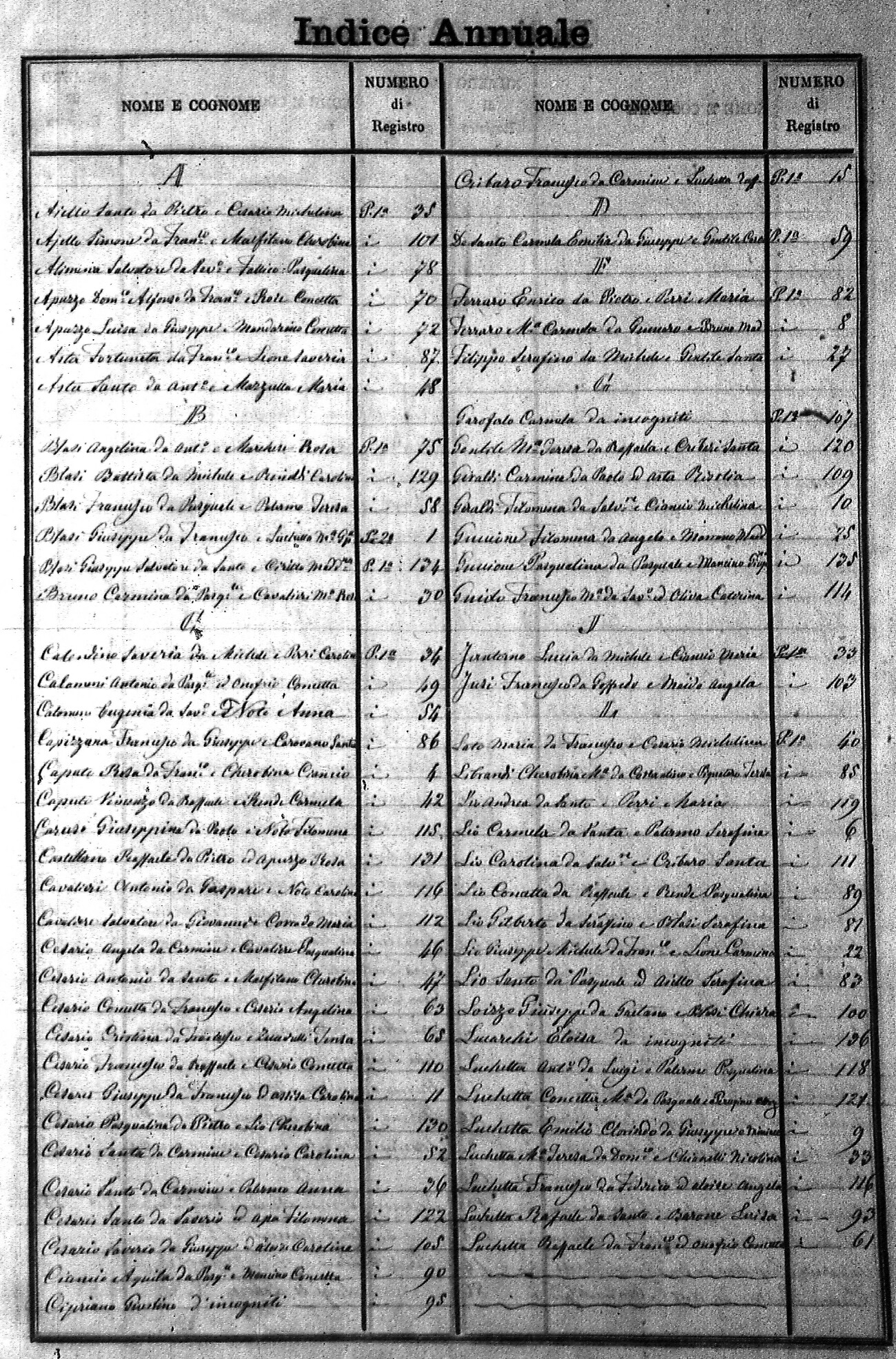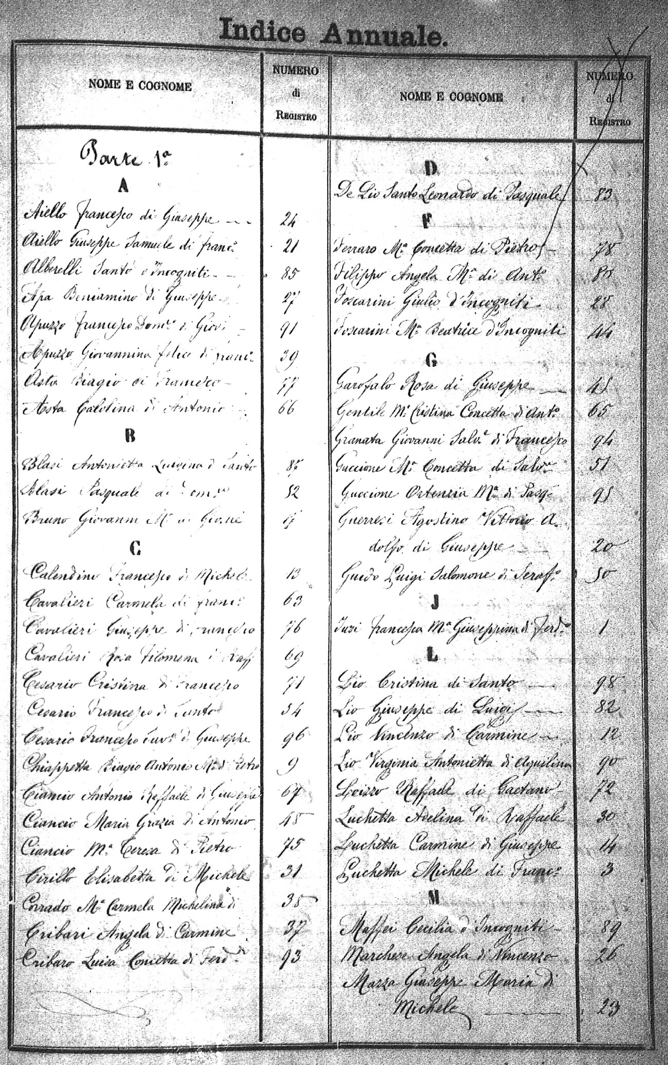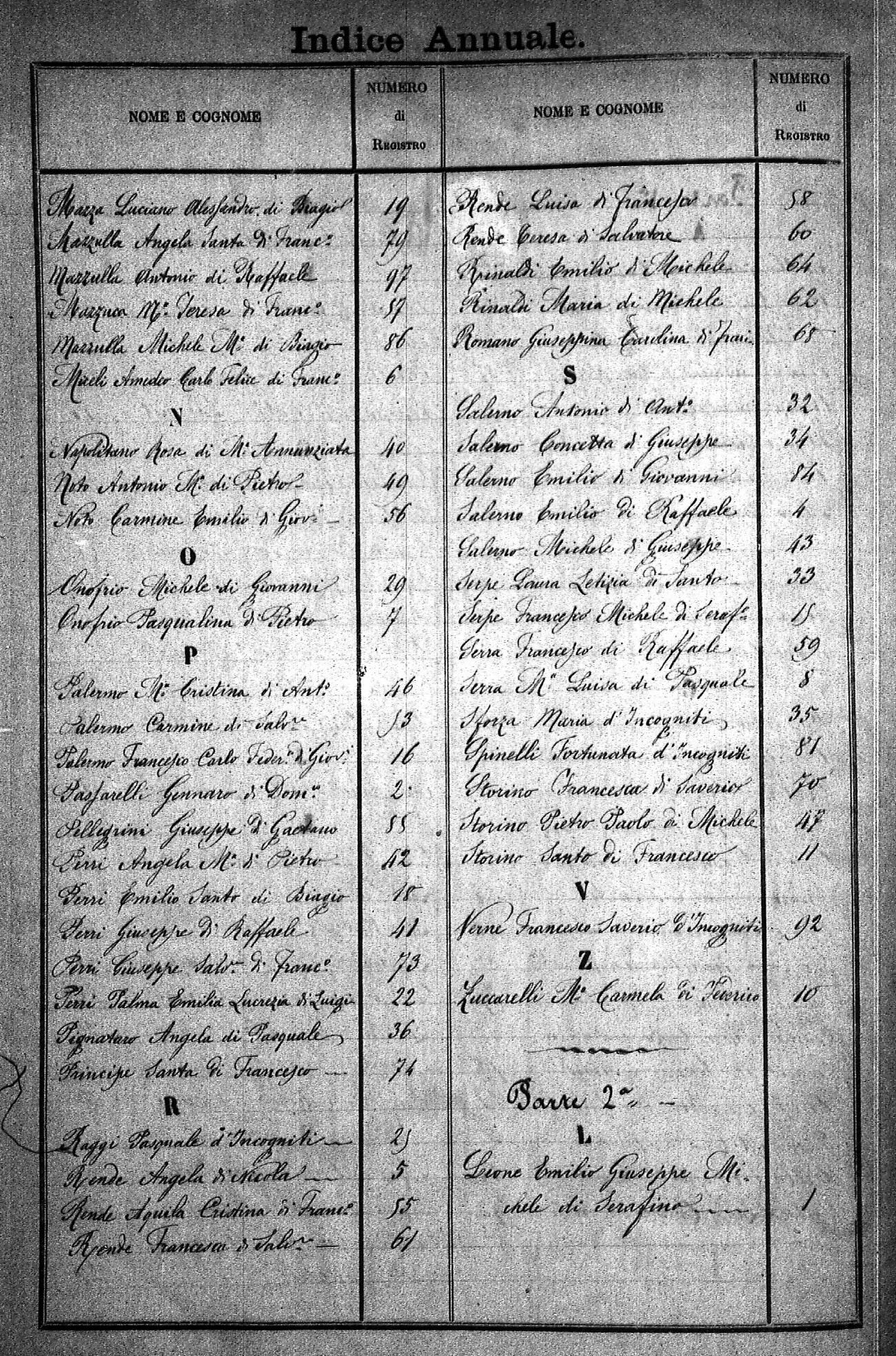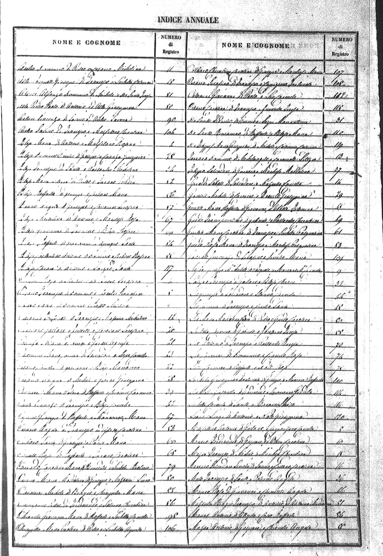 Indexes for birth Acts filed in the State Civil Office of San Fili. The Indexes are in alphabetical order by surname and contain the child's name, the mother's name, the father's name and the act number. The birth years available are listed below.