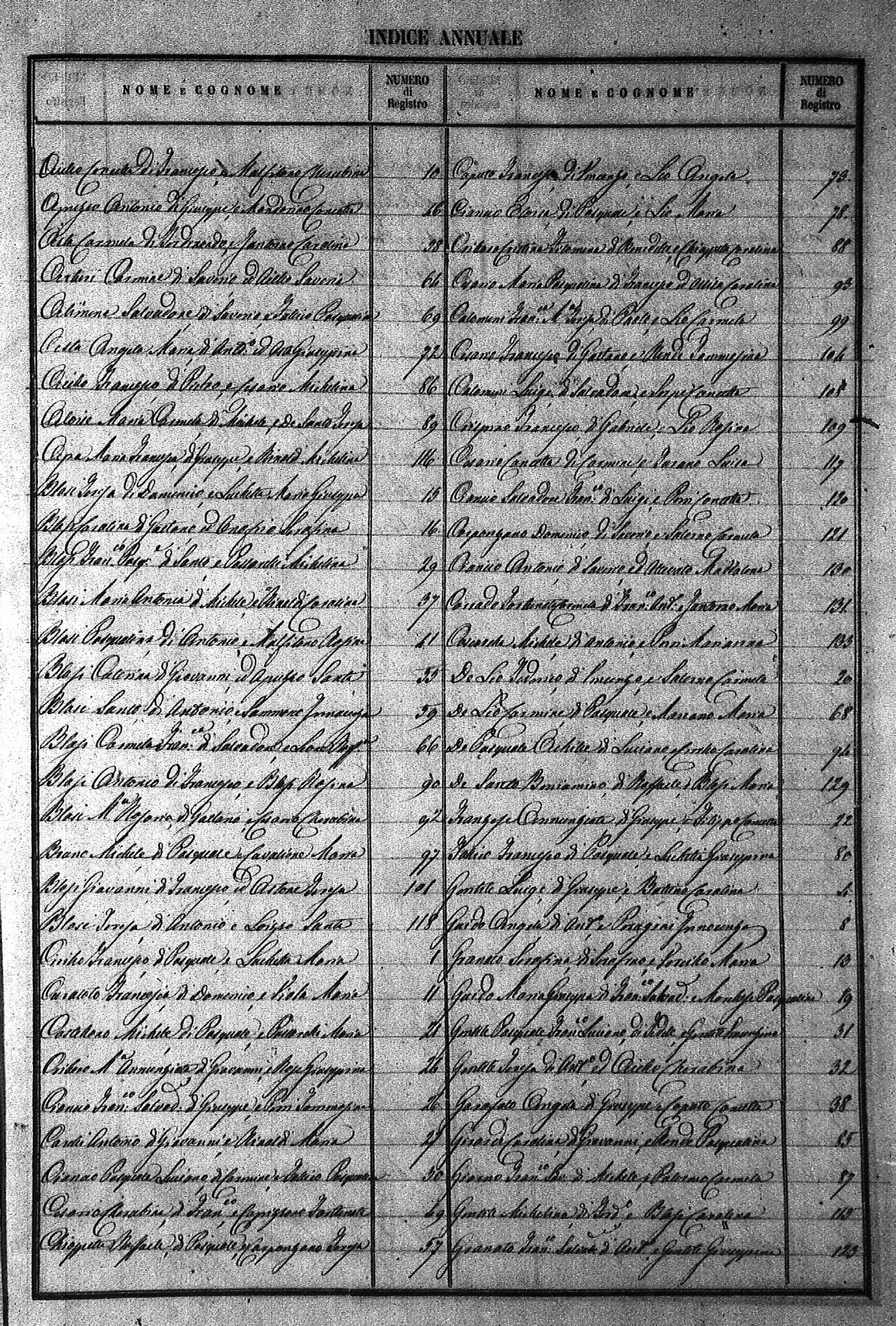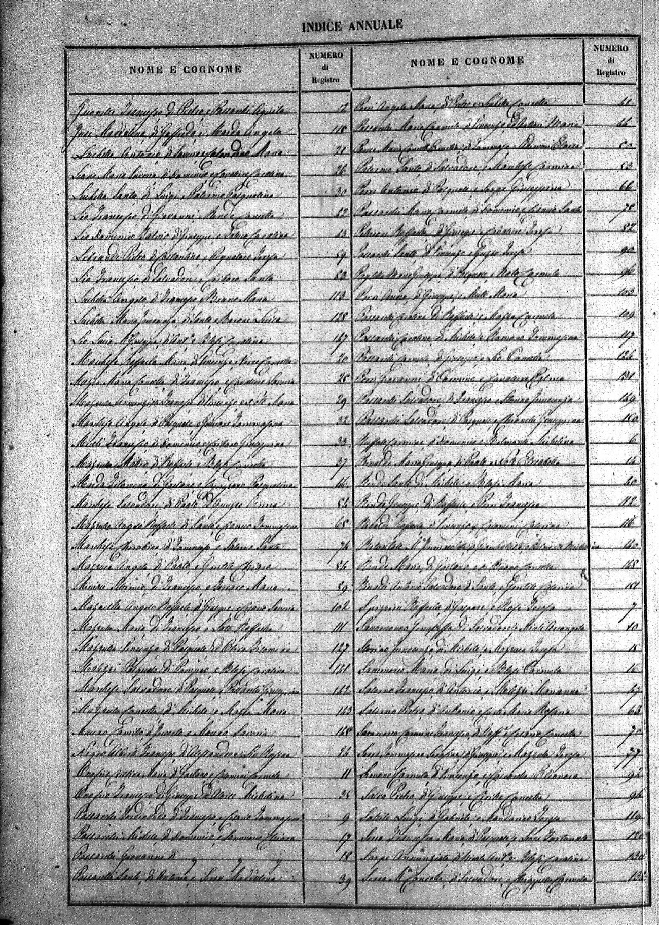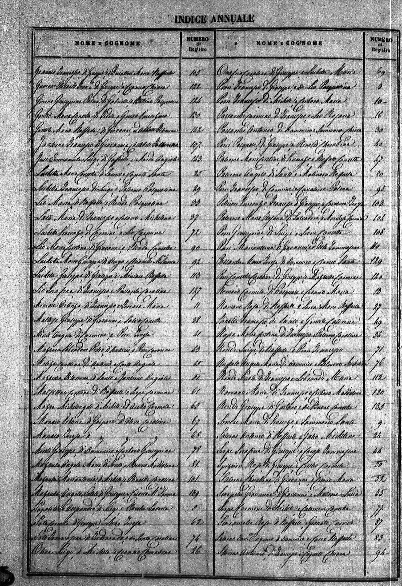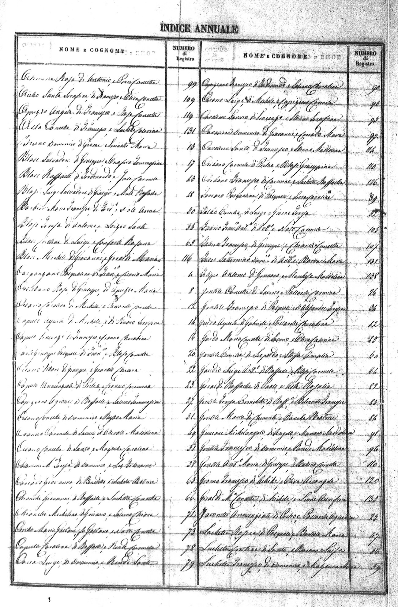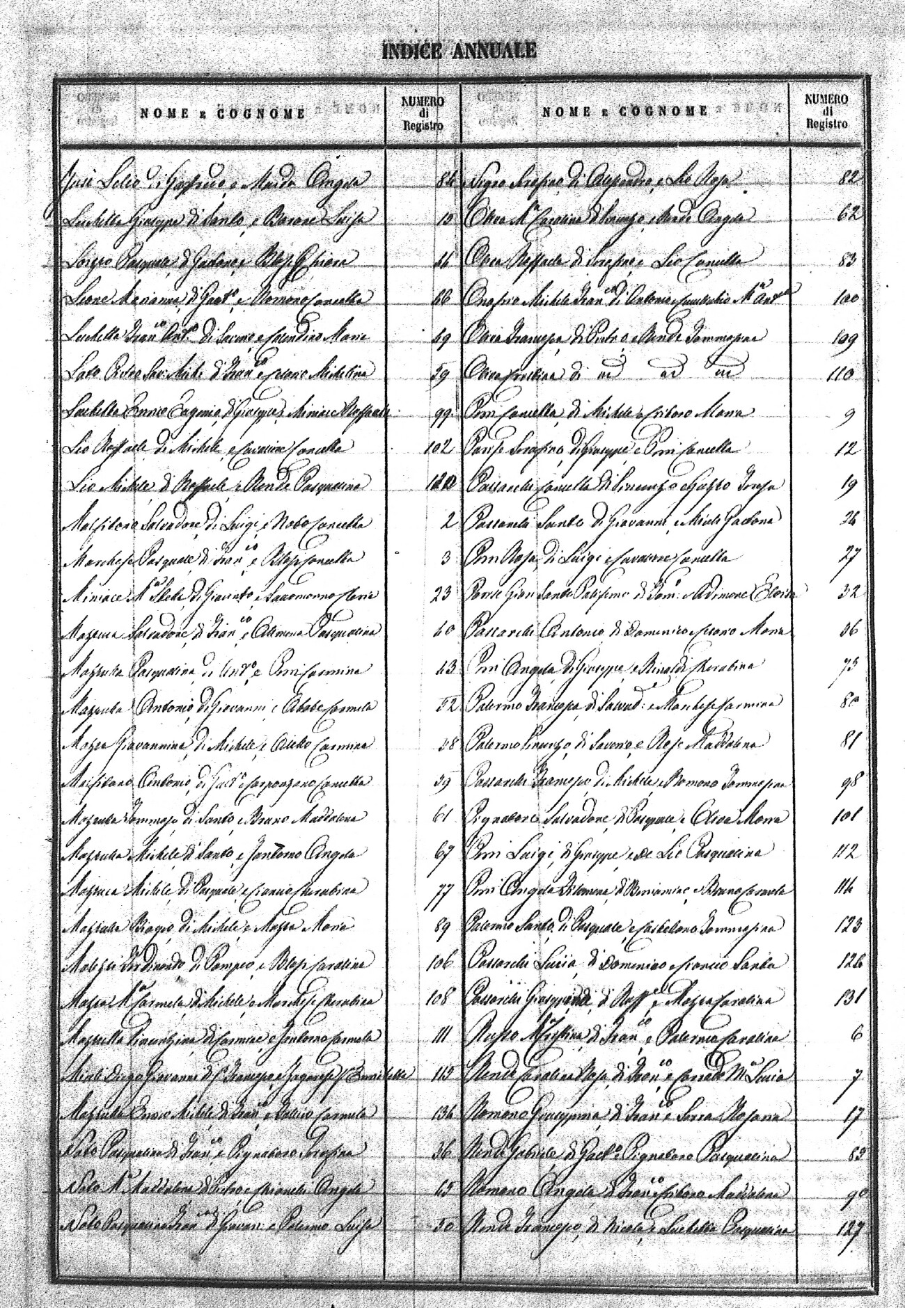 Indexes for birth Acts filed in the State Civil Office of San Fili. The Indexes are in alphabetical order by surname and contain the child's name, the mother's name, the father's name and the act number. The birth years available are listed below.