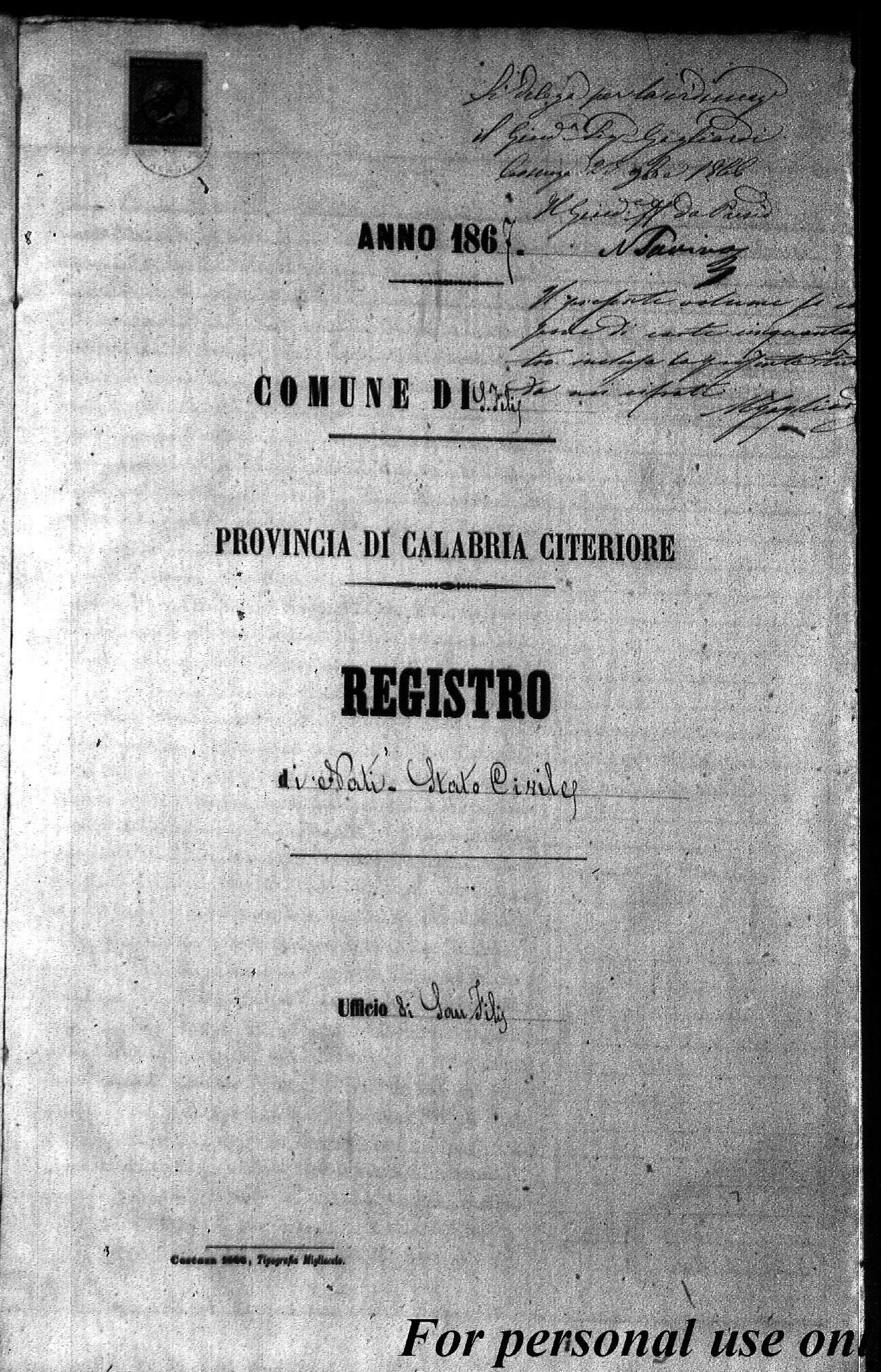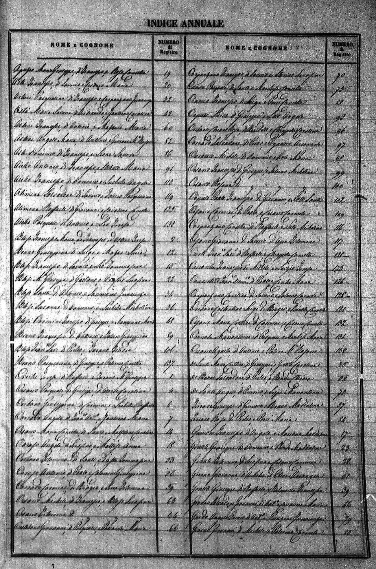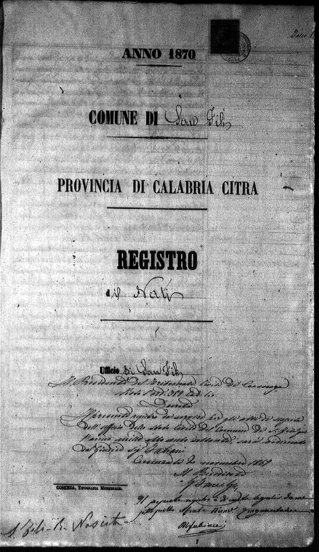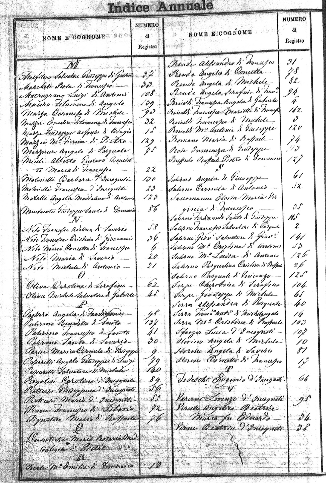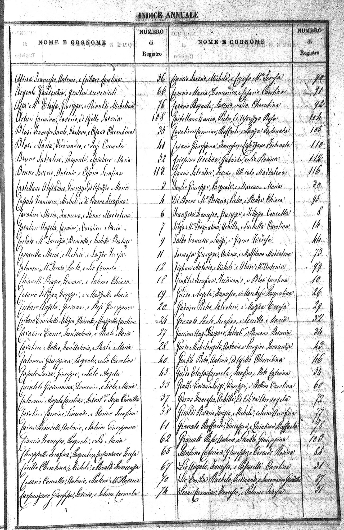 Indexes for birth Acts filed in the State Civil Office of San Fili. The Indexes are in alphabetical order by surname and contain the child's name, the mother's name, the father's name and the act number. The birth years available are listed below.