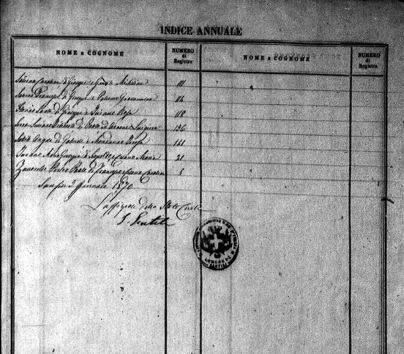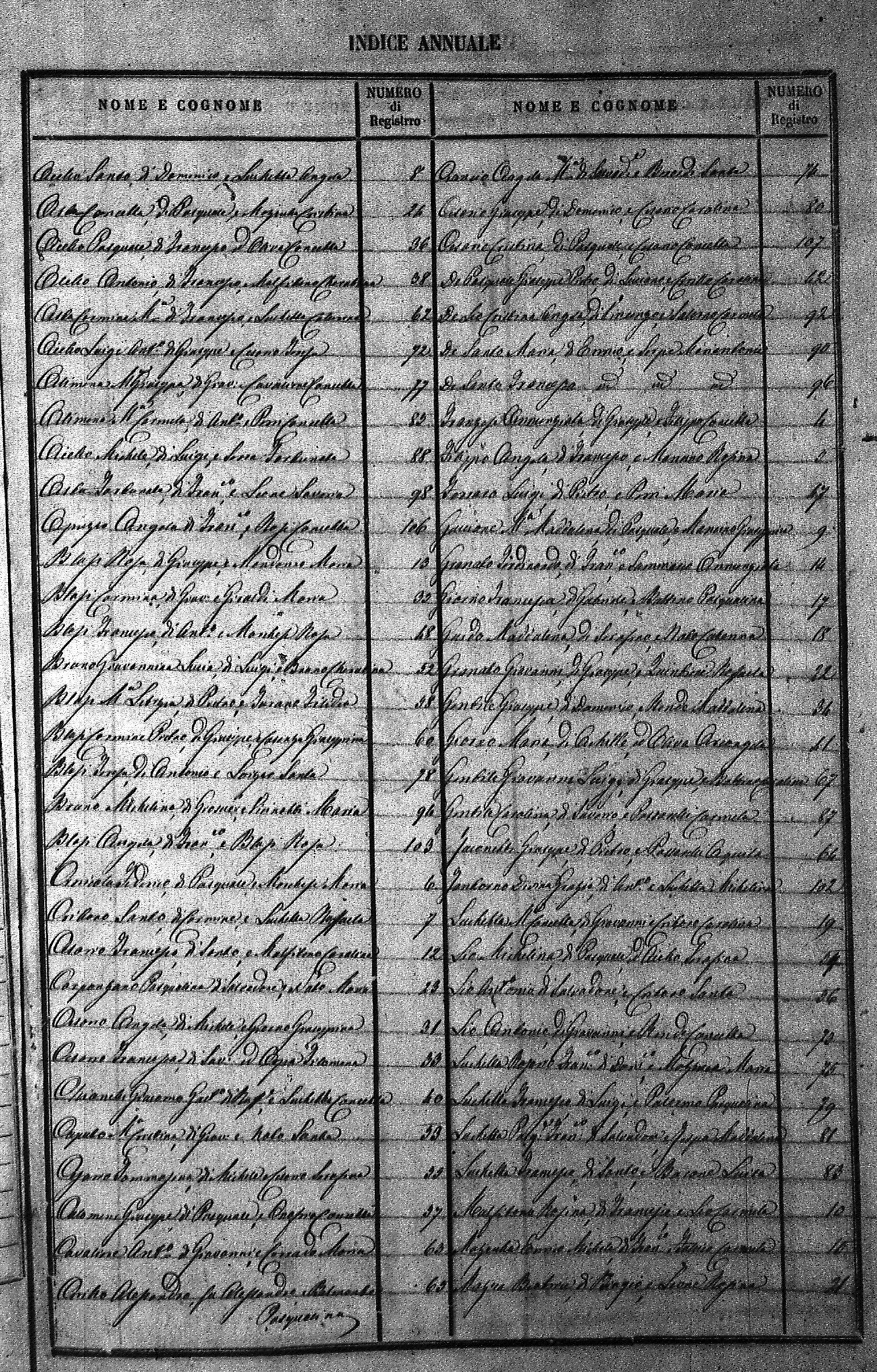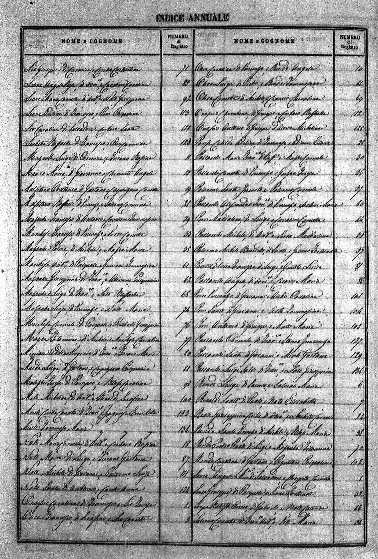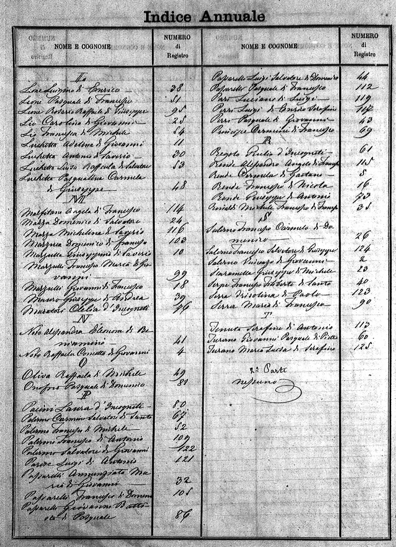 Indexes for birth Acts filed in the State Civil Office of San Fili. The Indexes are in alphabetical order by surname and contain the child's name, the mother's name, the father's name and the act number. The birth years available are listed below.