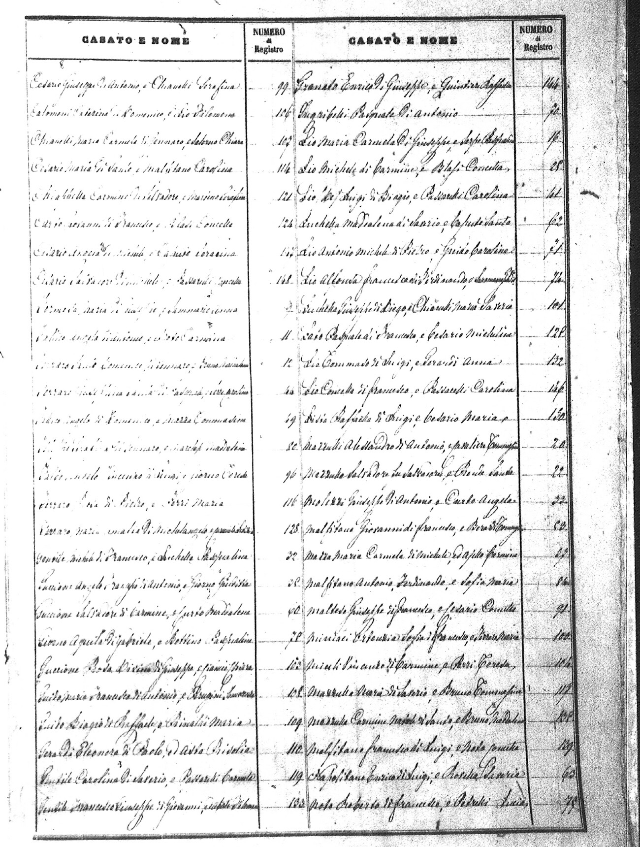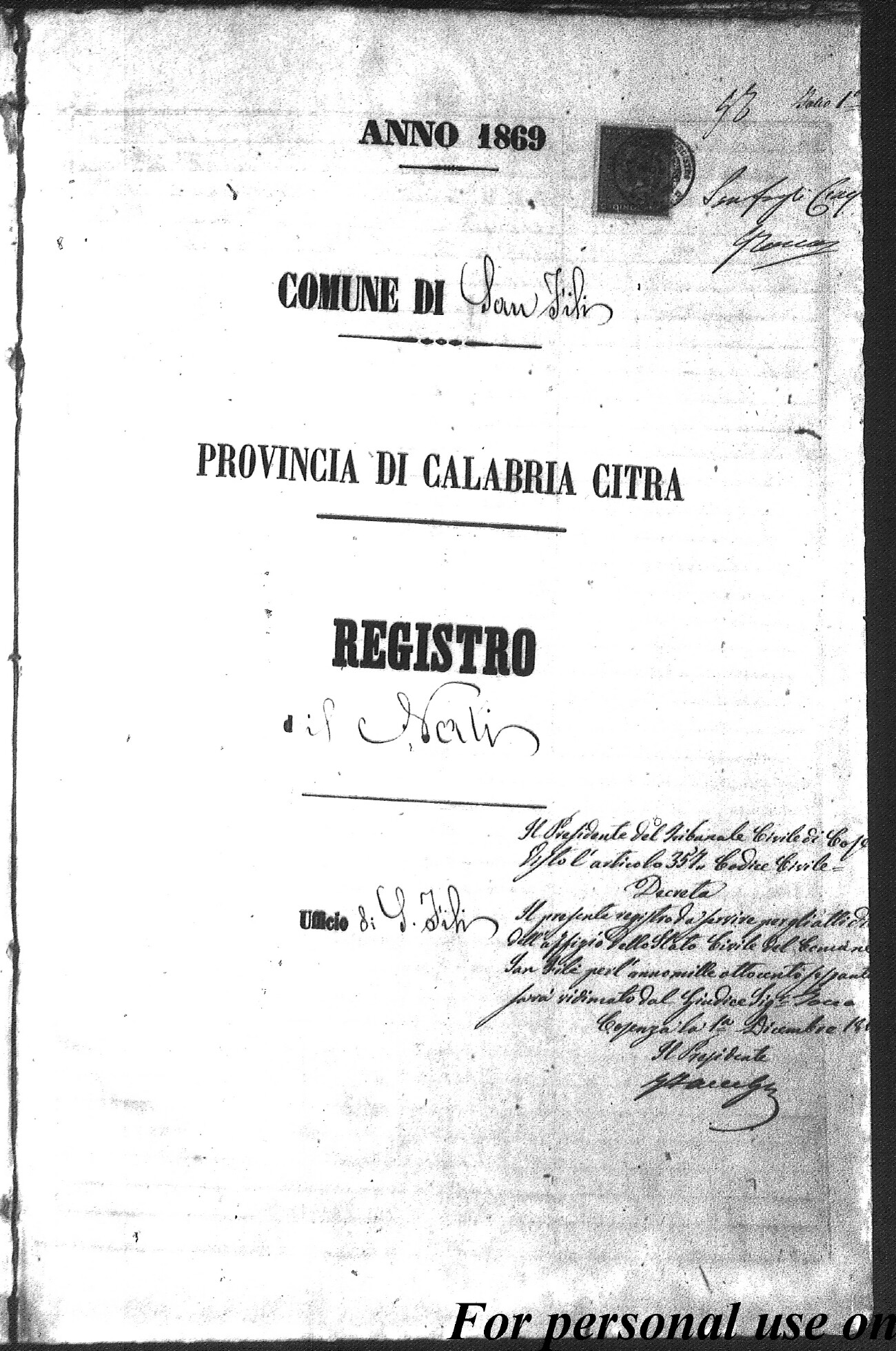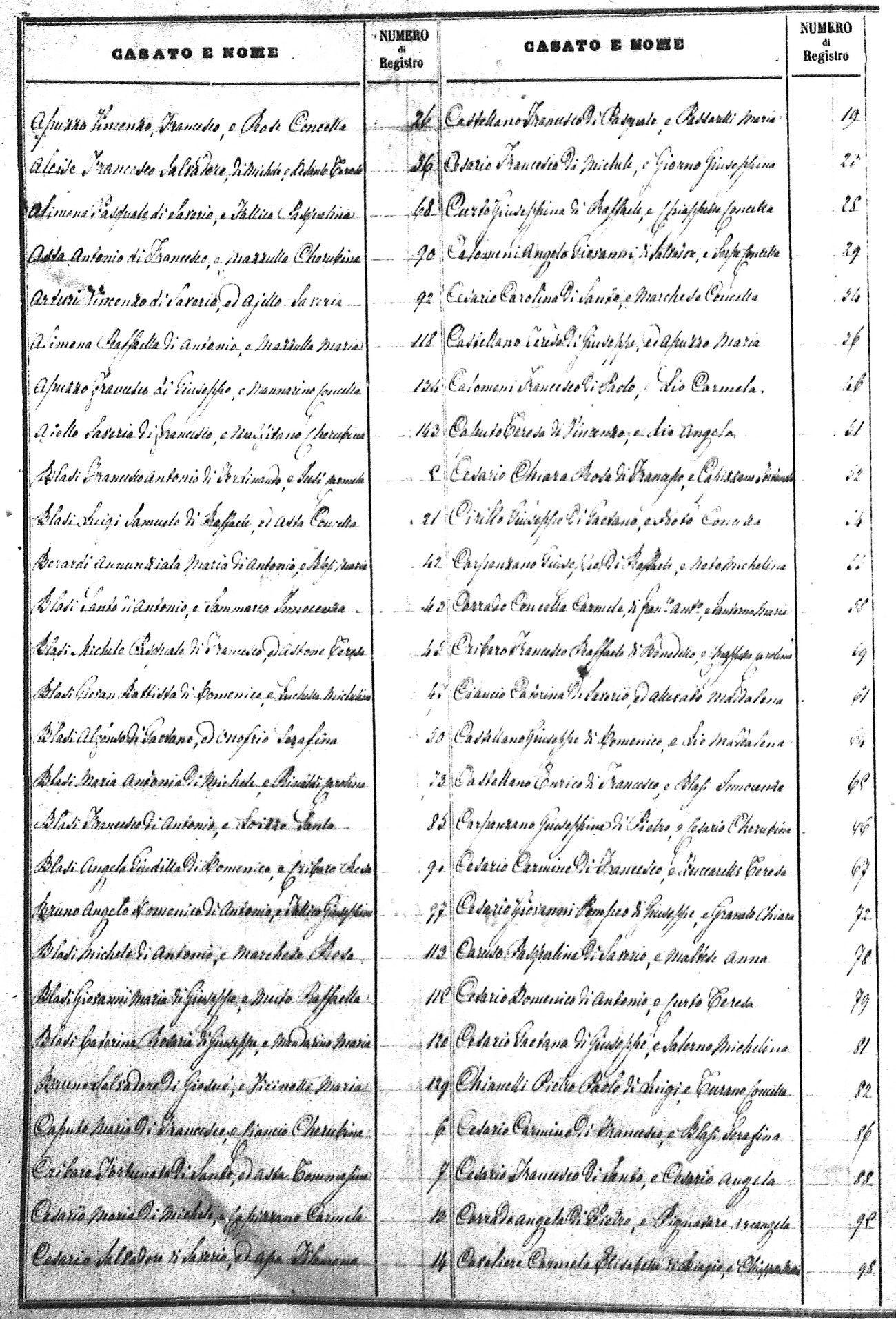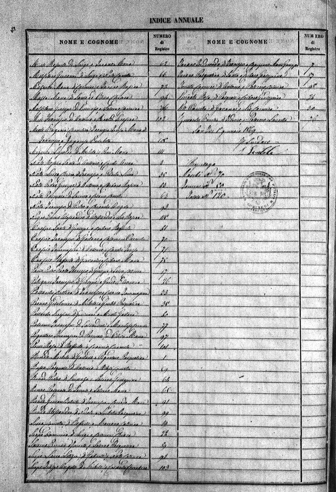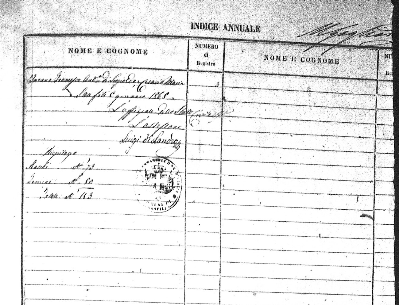 Indexes for birth Acts filed in the State Civil Office of San Fili. The Indexes are in alphabetical order by surname and contain the child's name, the mother's name, the father's name and the act number. The birth years available are listed below.
