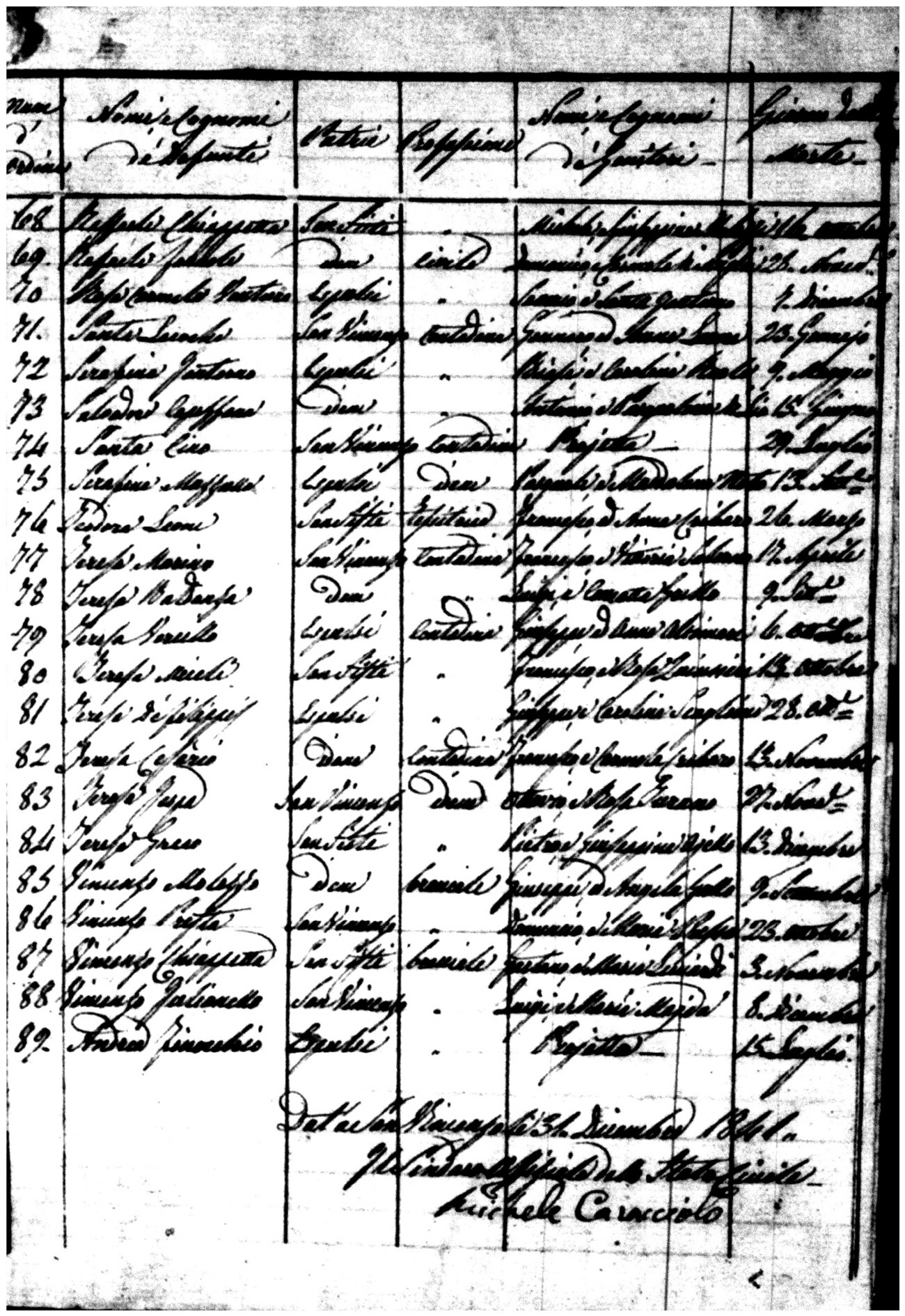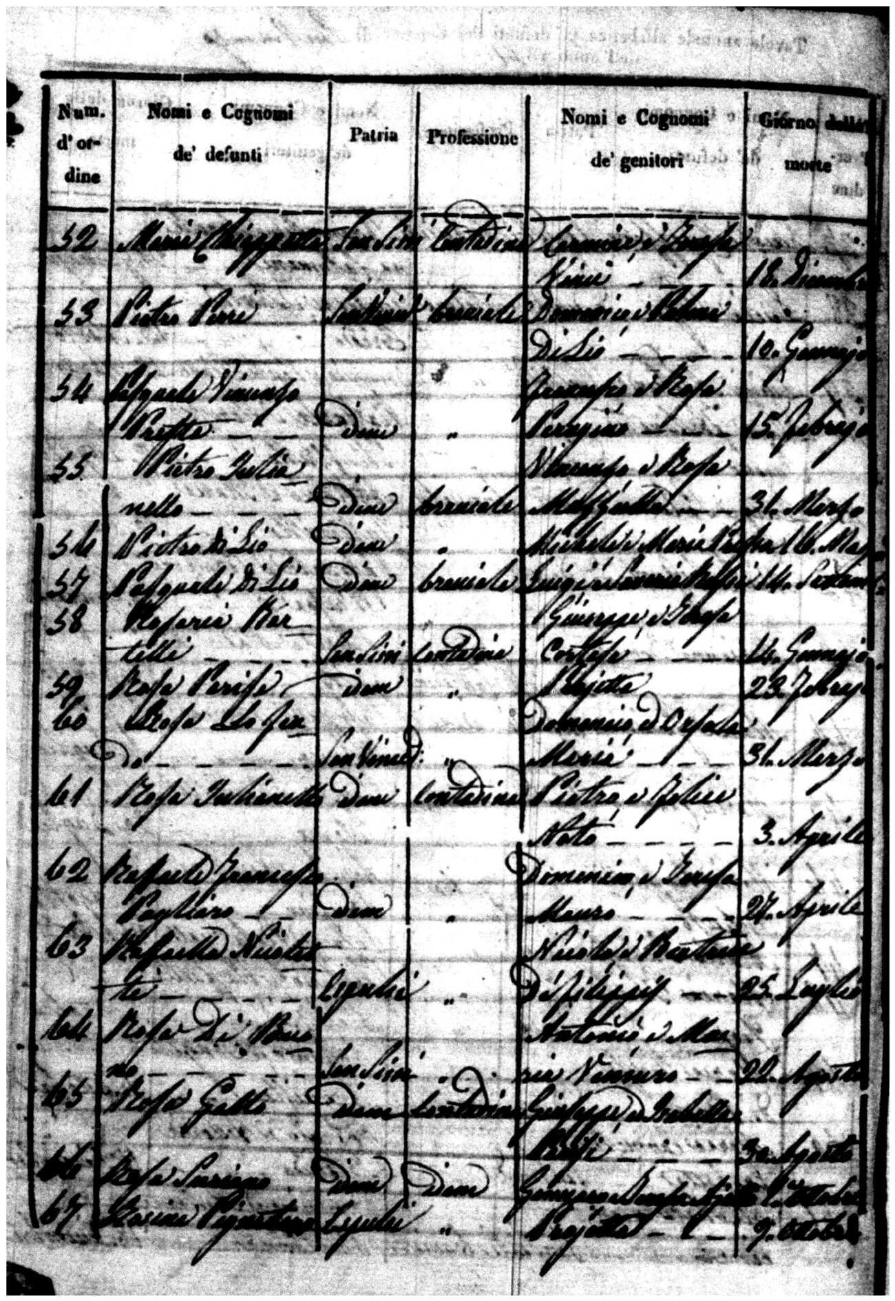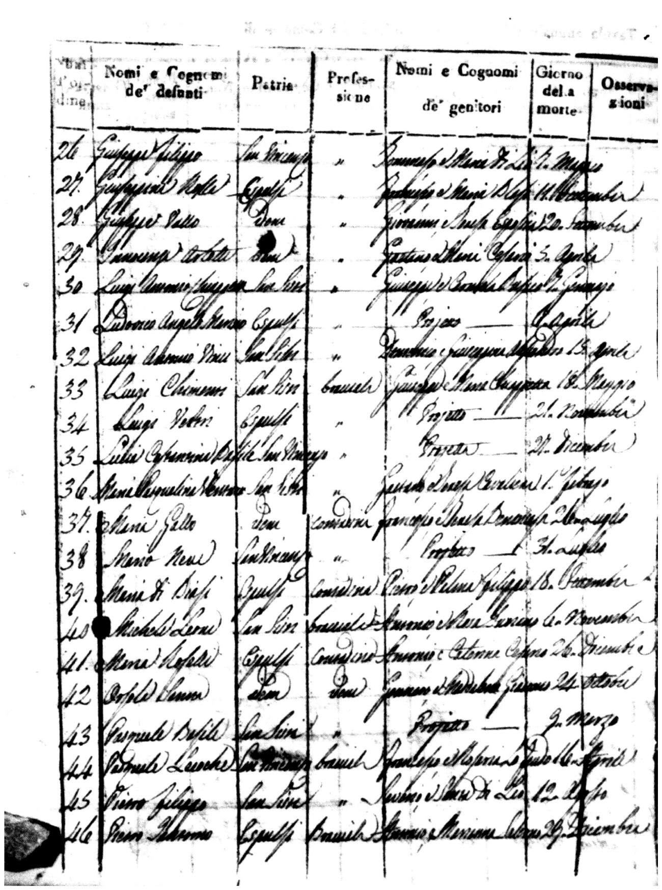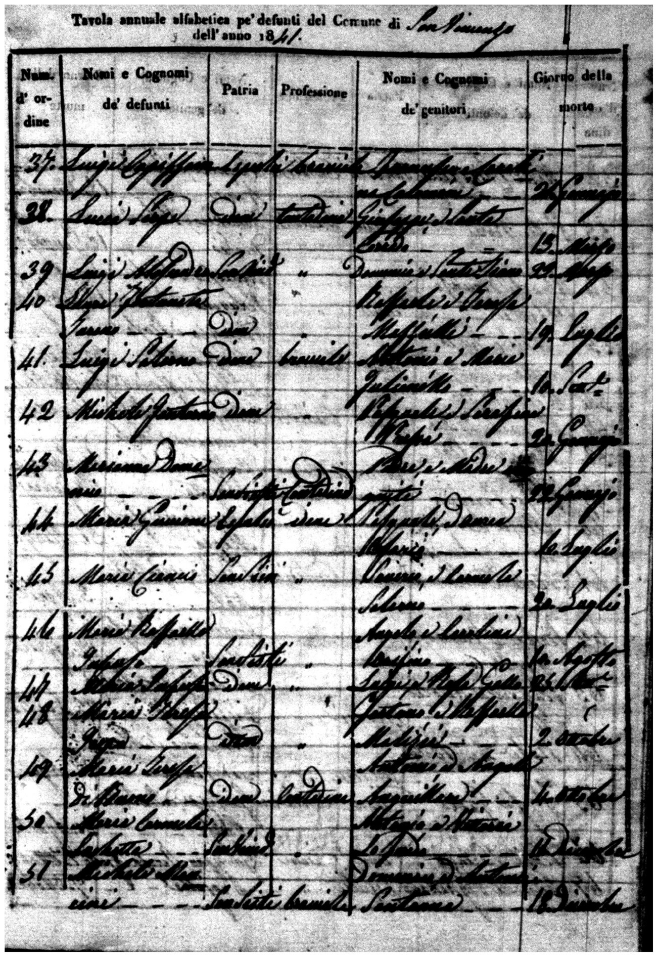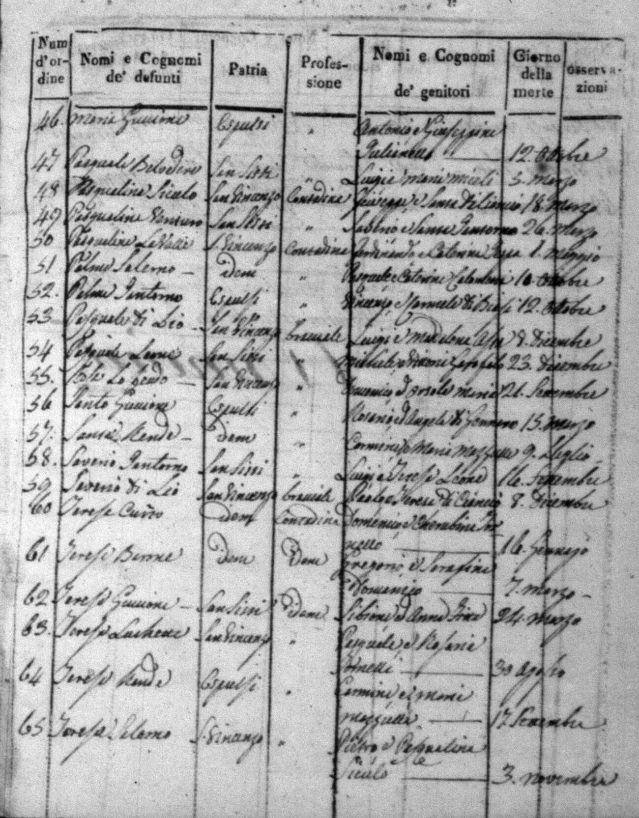 Indexes for Death acts filed in the State Civil Office of San Vincenzo La Costa. Most of the Indexes contain the names of the deceased, where they lived, their mother's name, their father's name and the date.