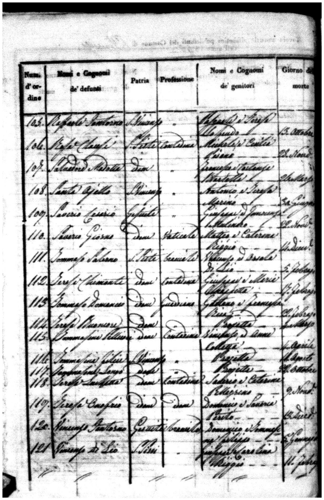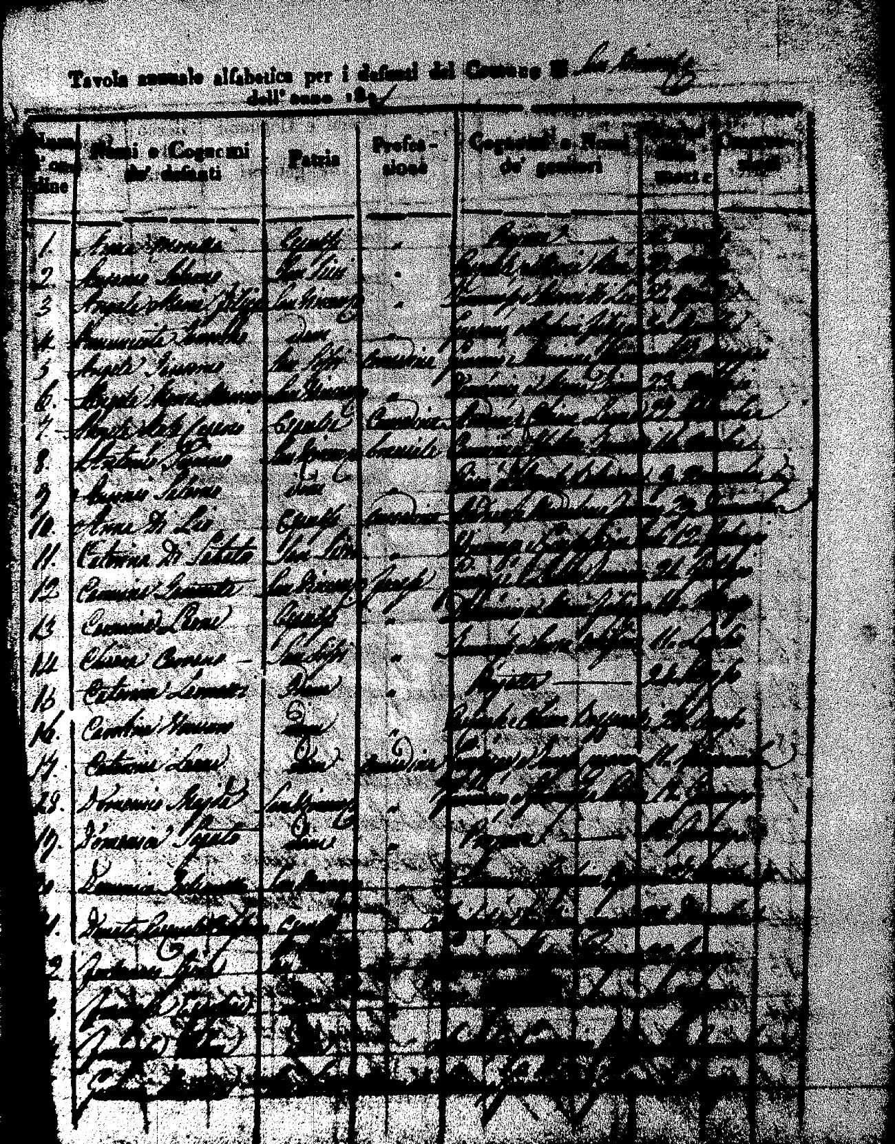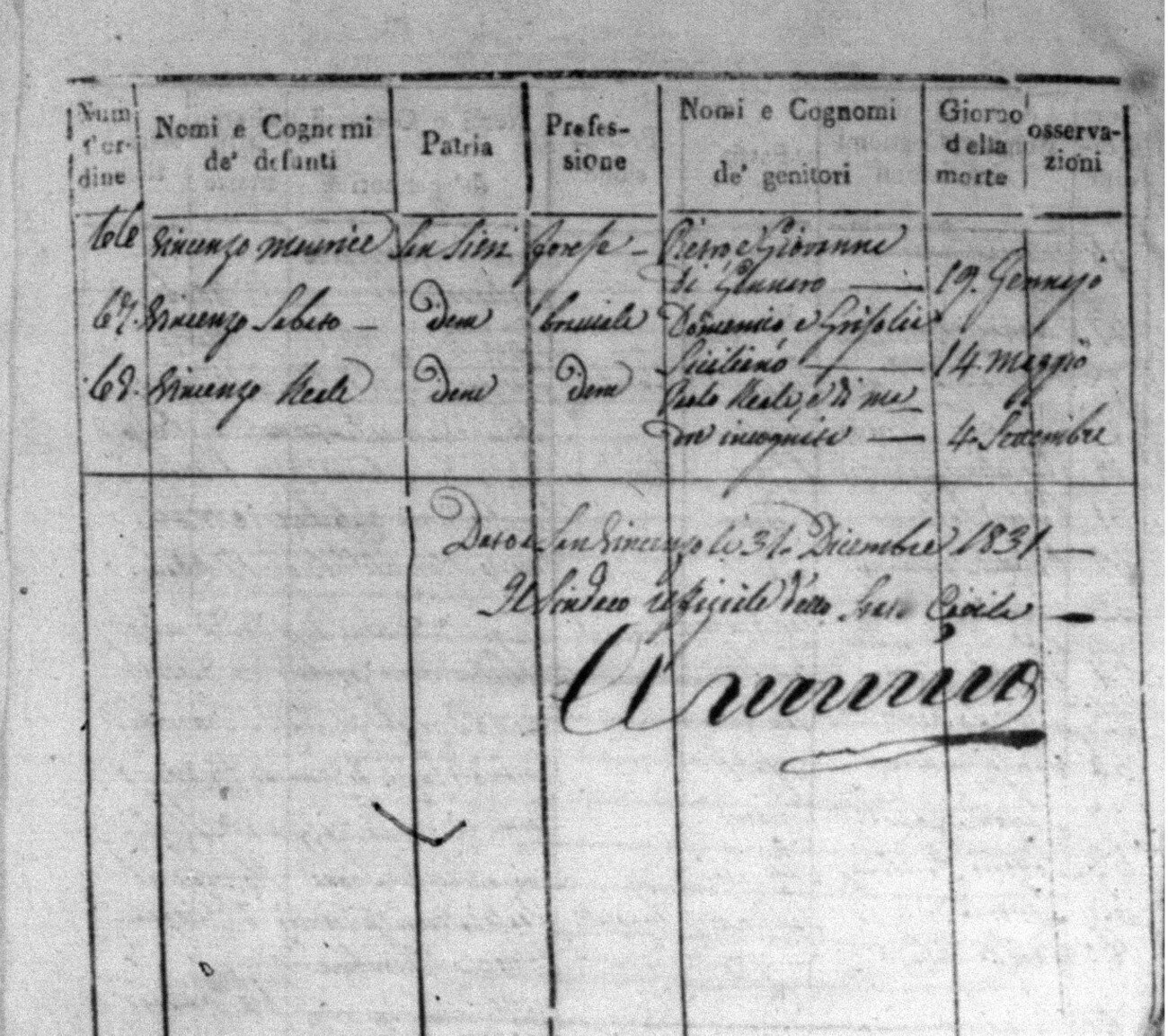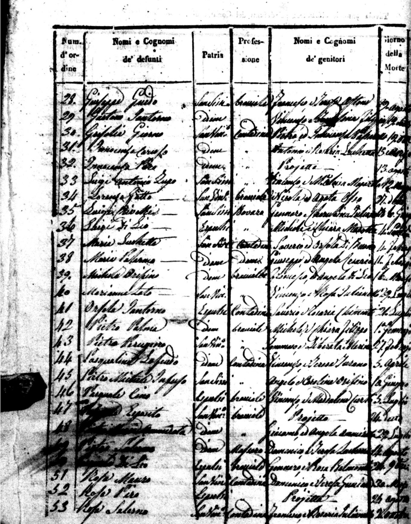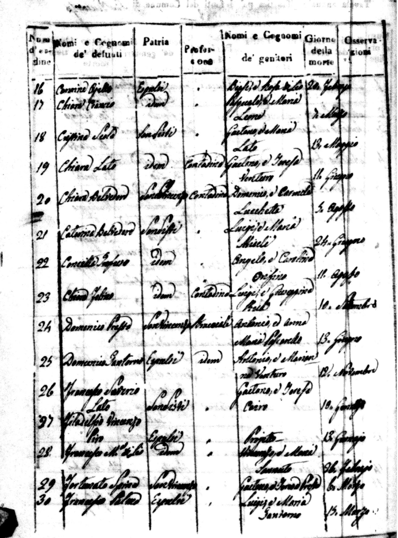 Indexes for Death acts filed in the State Civil Office of San Vincenzo La Costa. Most of the Indexes contain the names of the deceased, where they lived, their mother's name, their father's name and the date.