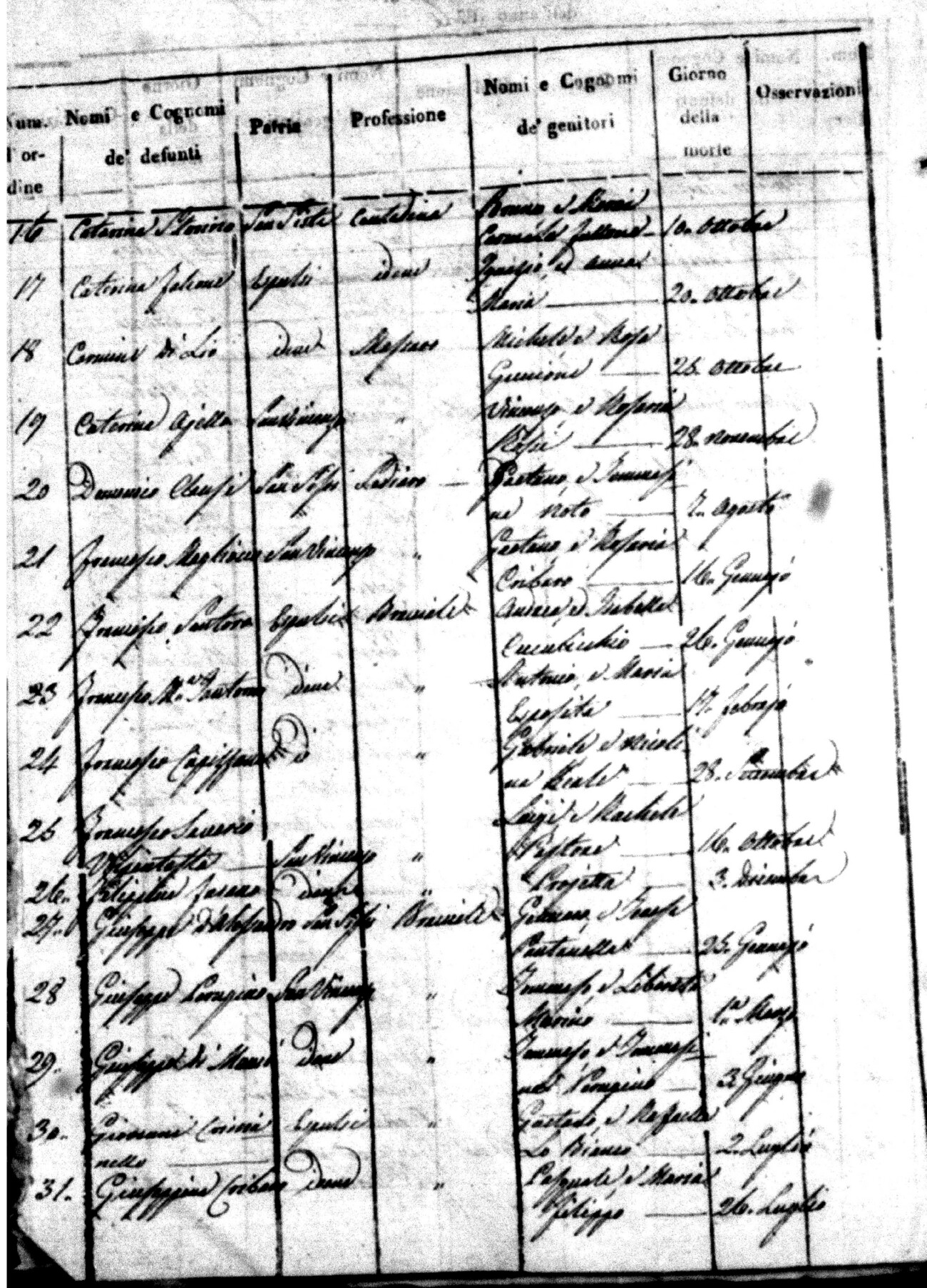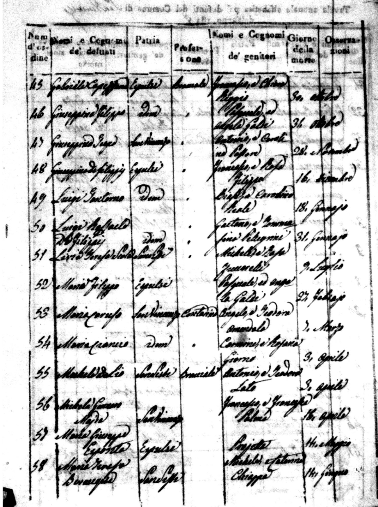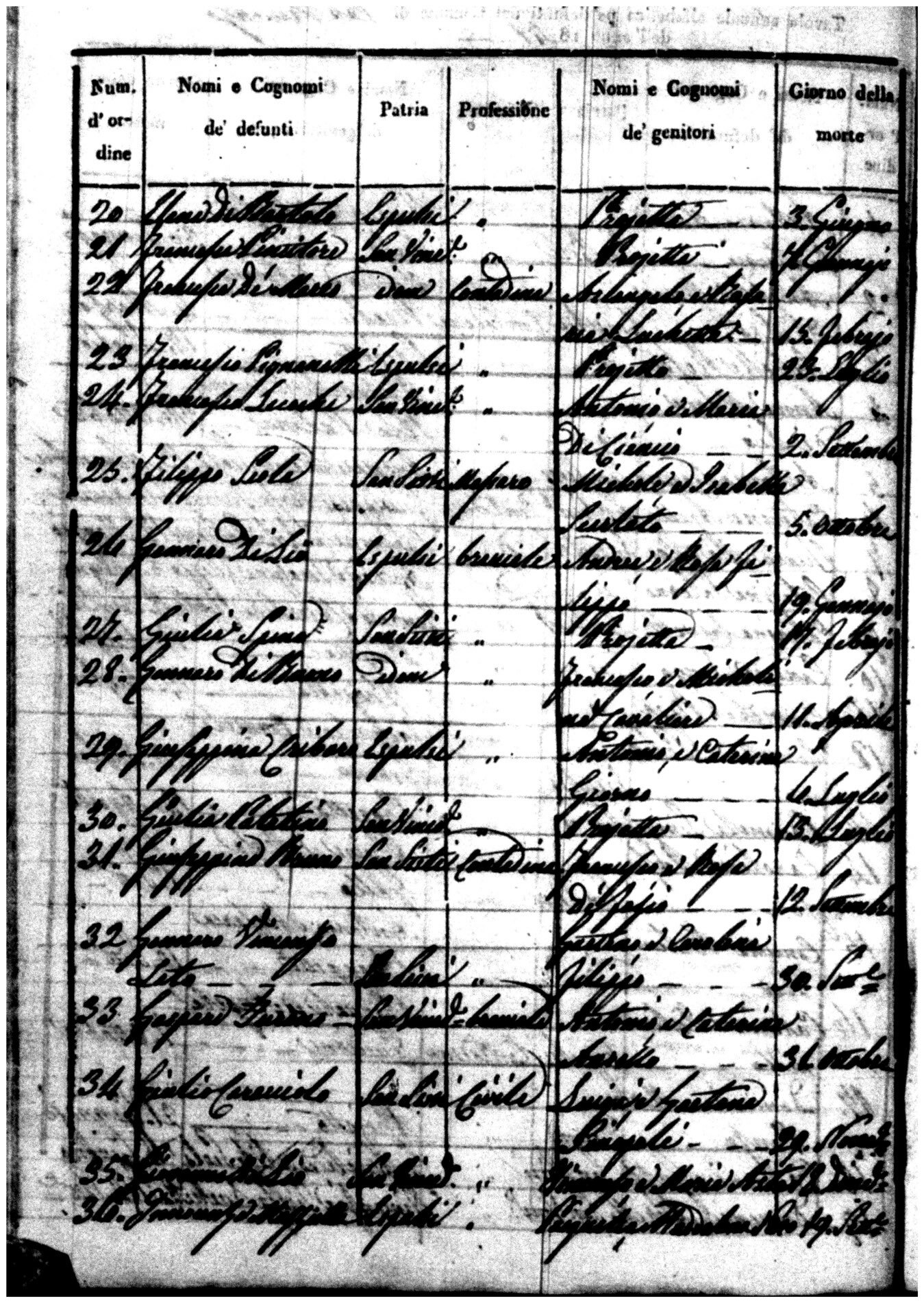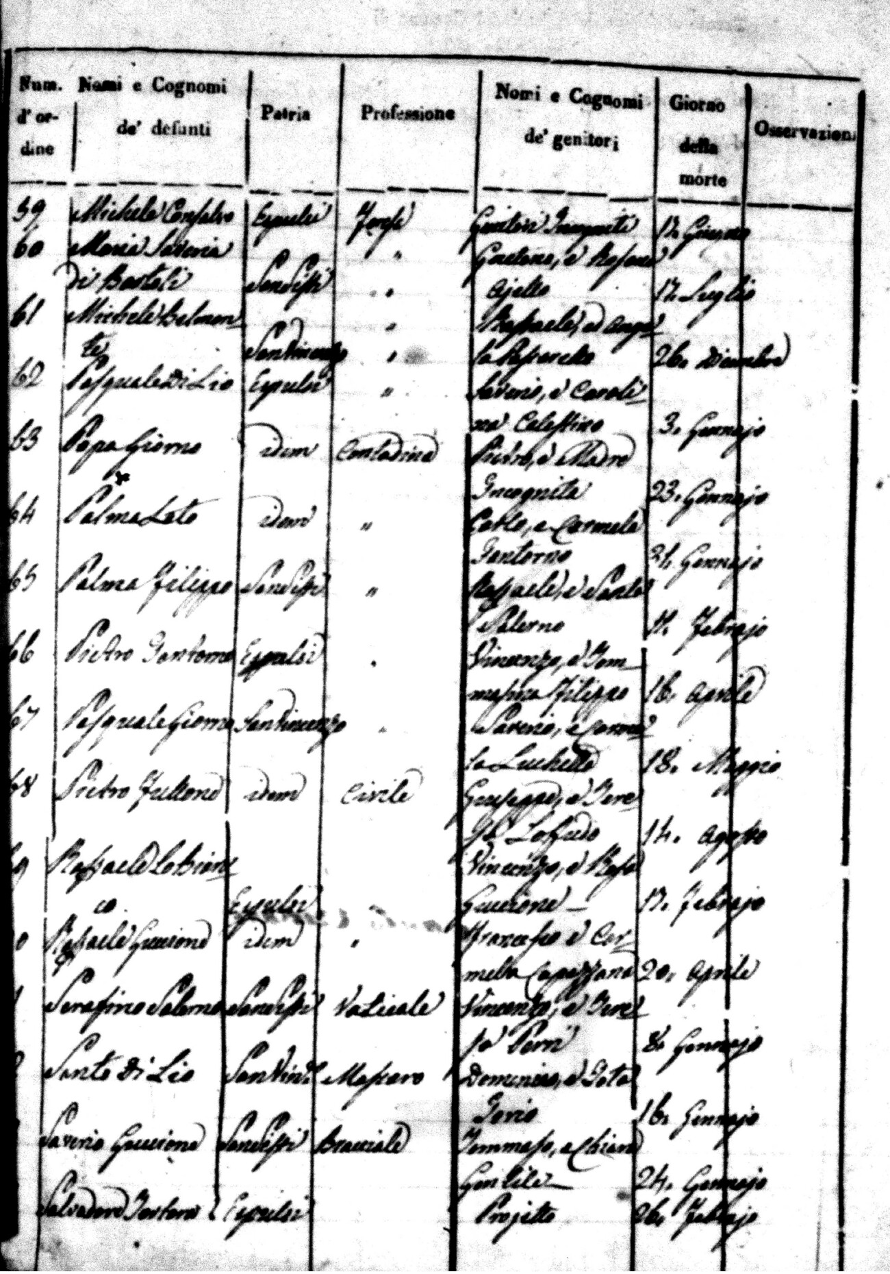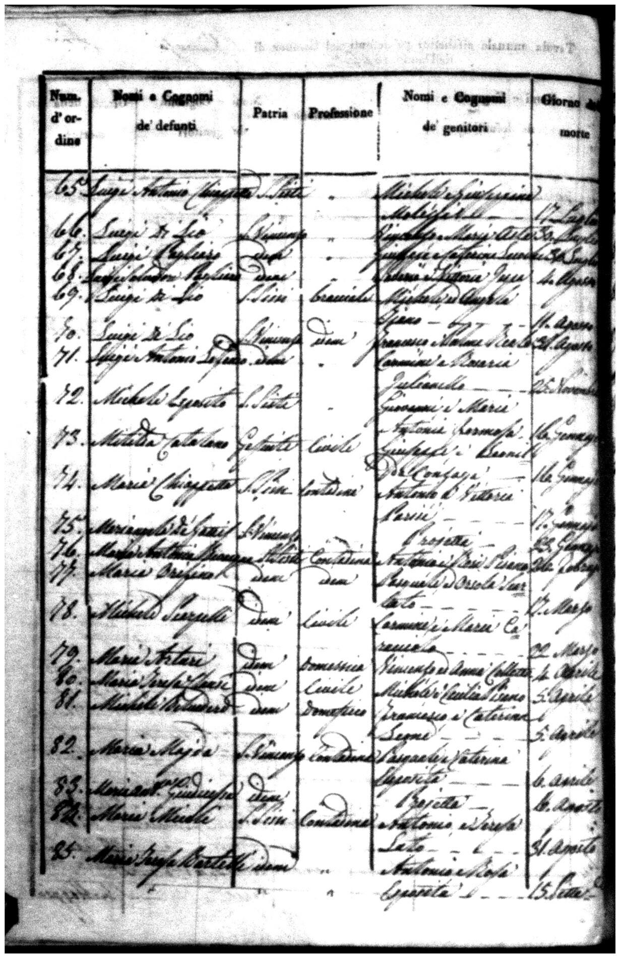 Indexes for Death acts filed in the State Civil Office of San Vincenzo La Costa. Most of the Indexes contain the names of the deceased, where they lived, their mother's name, their father's name and the date.