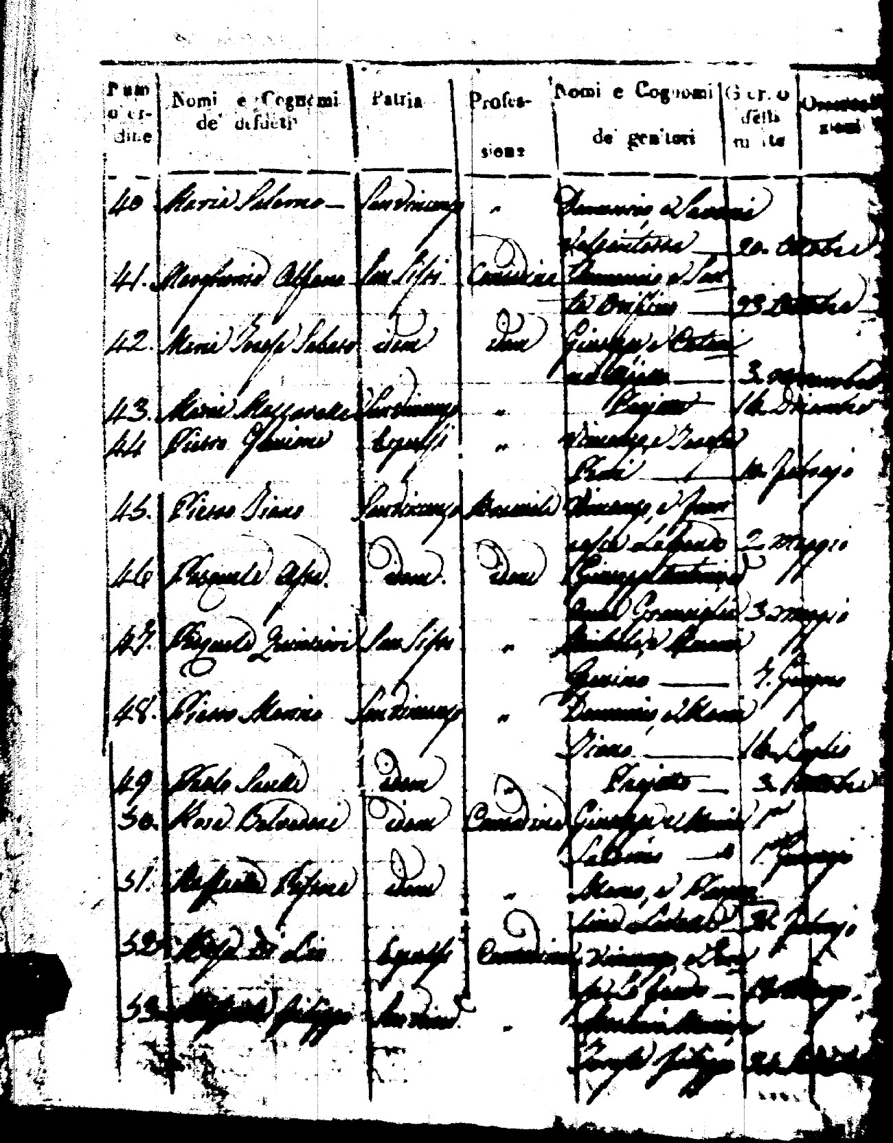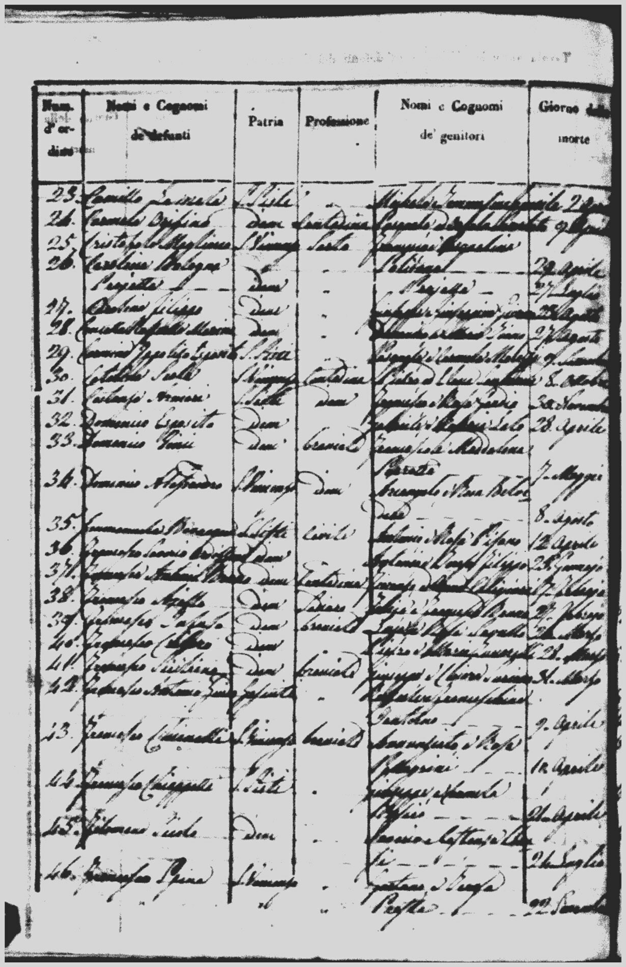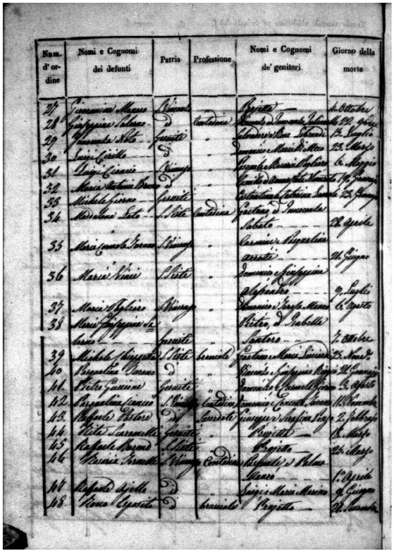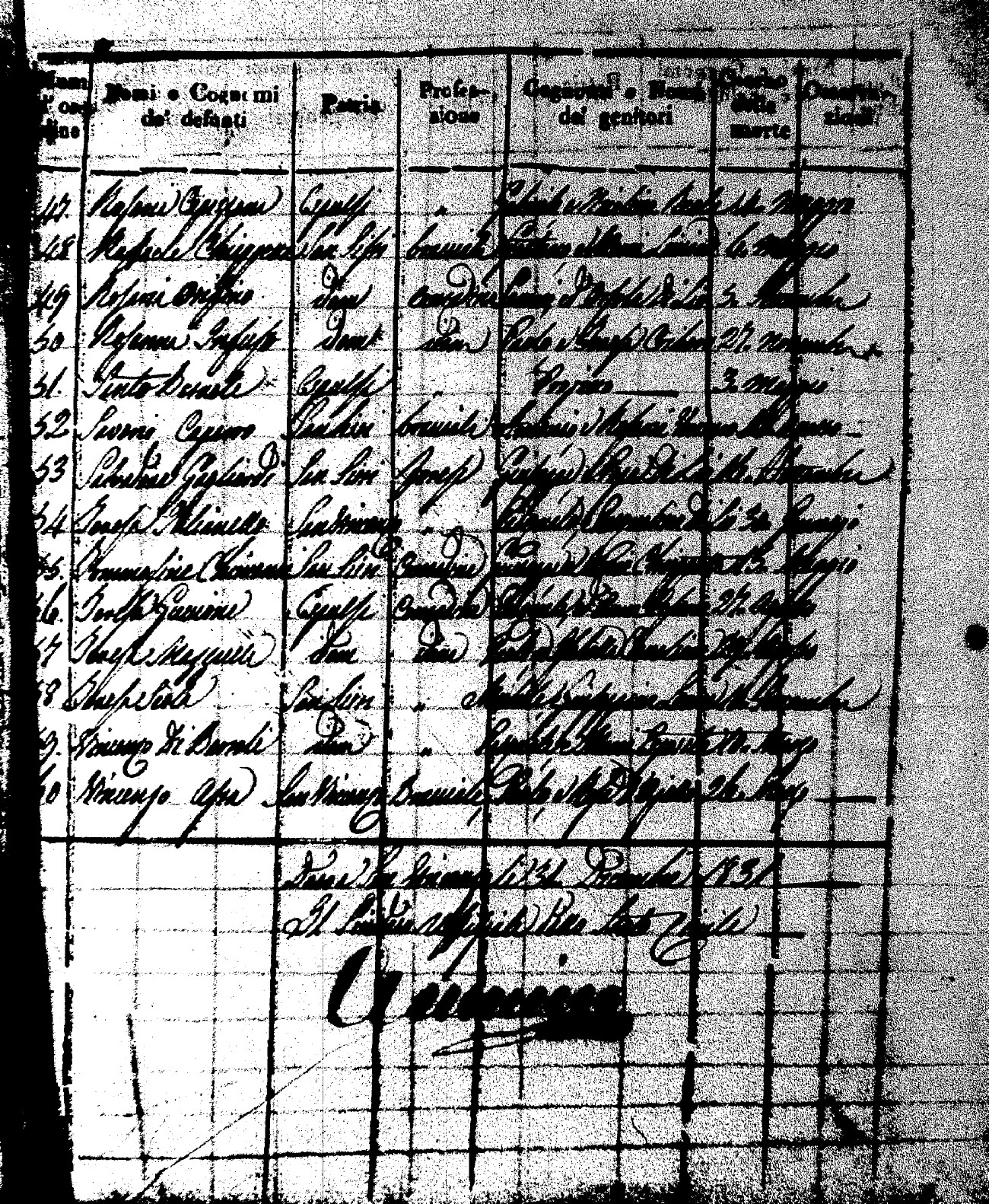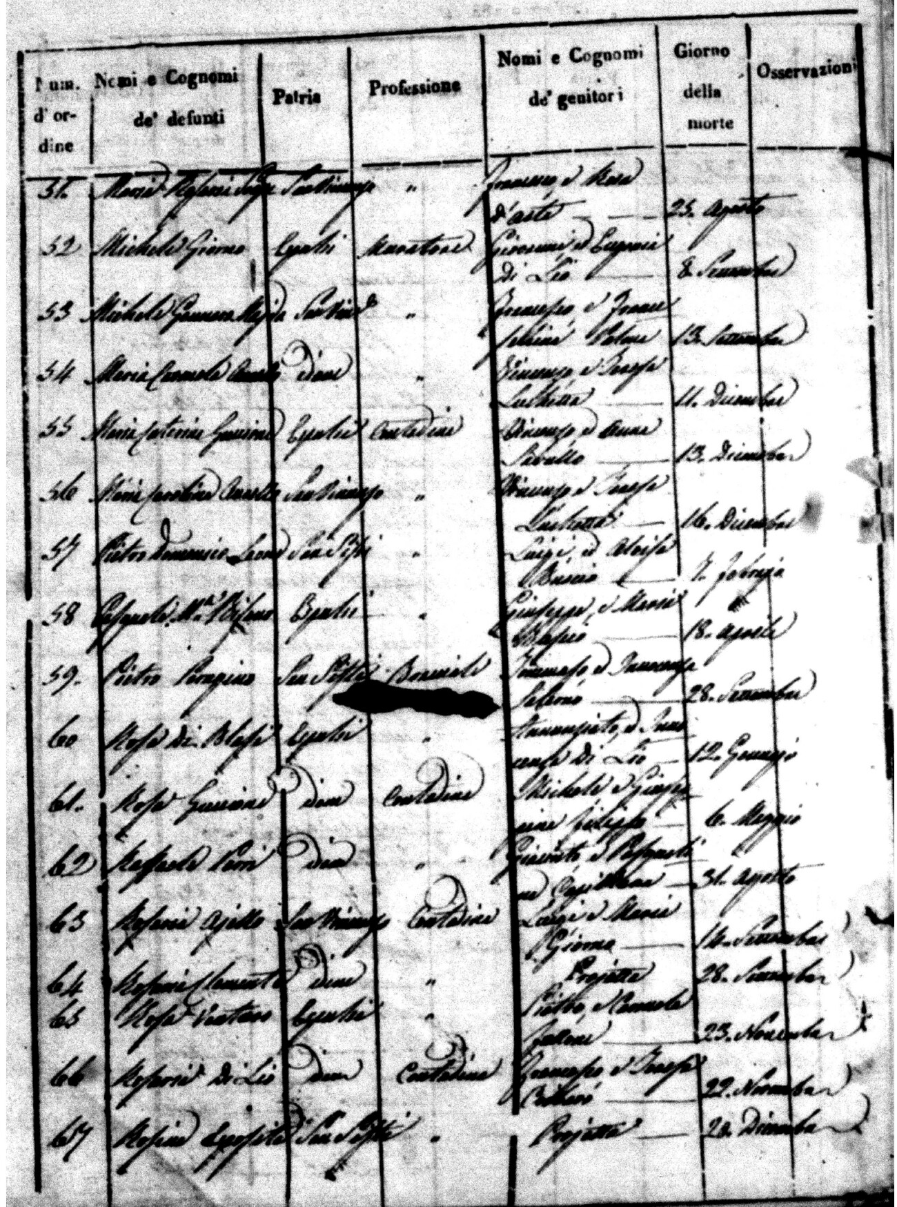 Indexes for Death acts filed in the State Civil Office of San Vincenzo La Costa. Most of the Indexes contain the names of the deceased, where they lived, their mother's name, their father's name and the date.